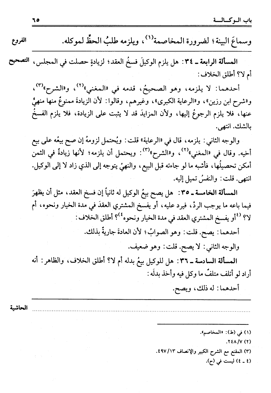 ـــــــــــــــــــــــــــــQالْمَسْأَلَةُ الرَّابِعَةُ-34: هَلْ يَلْزَمُ الْوَكِيلَ فَسْخُ الْعَقْدِ لِزِيَادَةٍ حَصَلَتْ فِي الْمَجْلِسِ أَمْ لَا؟ أَطْلَقَ الْخِلَافَ: