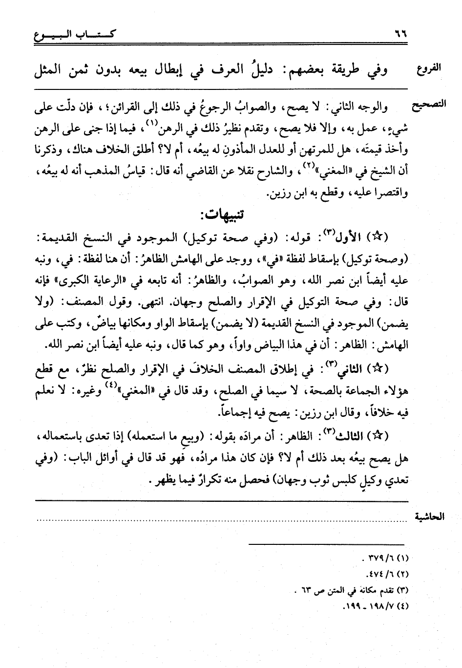 الْأَوَّلُ 3: قَوْلُهُ: "وَفِي صِحَّةِ تَوْكِيلٍ" الْمَوْجُودُ فِي النُّسَخِ الْقَدِيمَةِ "وَصِحَّةُ تَوْكِيلٍ" بِإِسْقَاطِ لَفْظَةِ "فِي" وَوُجِدَ عَلَى الْهَامِشِ "الظَّاهِرُ أَنَّ هُنَا لَفْظَةَ فِي" وَنَبَّهَ عَلَيْهِ أَيْضًا ابْنُ نَصْرِ اللَّهِ، وَهُوَ الصَّوَابُ وَالظَّاهِرُ أَنَّهُ تَابَعَهُ فِي الرِّعَايَةِ الْكُبْرَى فَإِنَّهُ قَالَ: وَفِي صِحَّةِ التَّوْكِيلِ فِي الْإِقْرَارِ وَالصُّلْحِ وَجْهَانِ انْتَهَى. وقول المصنف: "ولا يضمن" الْمَوْجُودُ فِي النُّسَخِ الْقَدِيمَةِ "لَا يَضْمَنُ" بِإِسْقَاطِ "الْوَاوِ" وَمَكَانُهَا بَيَاضٌ، وَكَتَبَ عَلَى الْهَامِشِ: الظَّاهِرُ أَنَّ فِي هَذَا الْبَيَاضِ وَاوًا وَهُوَ كَمَا قَالَ، وَنَبَّهَ عَلَيْهِ أَيْضًا ابْنُ نَصْرِ اللَّهِ.