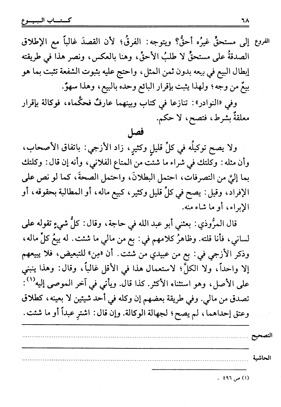 زَادَ الْأَزَجِيُّ: بِاتِّفَاقِ الْأَصْحَابِ وَأَنَّ مِثْلَهُ وَكَّلْتُكَ فِي شِرَاءِ مَا شِئْتَ مِنْ الْمَتَاعِ الْفُلَانِيِّ، وَأَنَّهُ إنْ قَالَ: وَكَّلْتُكَ بِمَا إلَيَّ مِنْ التصرفات احتمل البطلان، واحتمل الصحة. كَمَا لَوْ نَصَّ عَلَى الْإِفْرَادِ، وَقِيلَ: يَصِحُّ فِي كُلِّ قَلِيلٍ وَكَثِيرٍ، كَبَيْعِ مَالِهِ أَوْ الْمُطَالَبَةِ بِحُقُوقِهِ أَوْ الْإِبْرَاءِ أَوْ مَا شَاءَ منه.