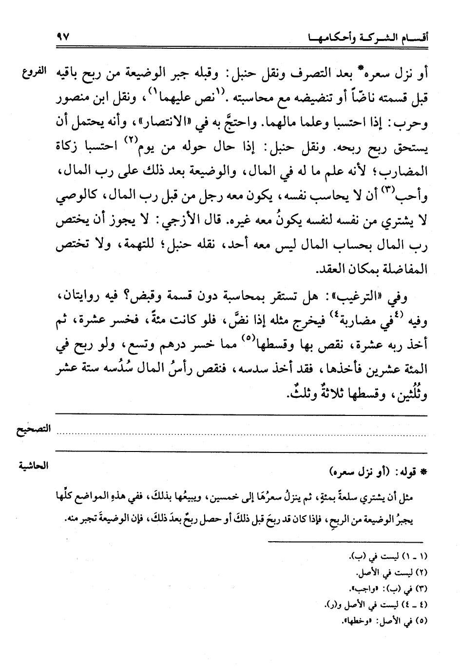 أَوْ نَزَلَ سِعْرُهُ بَعْدَ التَّصَرُّفِ وَنَقَلَ حَنْبَلٌ: وَقَبْلَهُ جَبْرُ الْوَضِيعَةِ مِنْ رِبْحِ بَاقِيهِ قَبْلَ قِسْمَتِهِ نَاضًّا أَوْ تَنْضِيضَه مَعَ مُحَاسَبَتِهِ، "1نَصَّ عَلَيْهِمَا1". وَنَقَلَ ابْنُ مَنْصُورٍ وَحَرْبٌ: إذَا احْتَسَبَا وَعَلِمَا مَا لَهُمَا، وَاحْتَجَّ بِهِ فِي الِانْتِصَارِ، وَأَنَّهُ يَحْتَمِلُ أَنْ يَسْتَحِقَّ رِبْحَ رِبْحِهِ. وَنَقَلَ حَنْبَلٌ: إذَا حَالَ حَوْلُهُ مِنْ يَوْمِ2 احْتَسَبَا زَكَاةَ الْمُضَارِبِ، لِأَنَّهُ عَلِمَ مَالَهُ فِي الْمَالِ، وَالْوَضِيعَةُ بَعْدَ ذَلِكَ عَلَى رَبِّ الْمَالِ وَأُحِبُّ3 أَنْ لَا يُحَاسِبَ نَفْسَهُ، يَكُونُ مَعَهُ رَجُلٌ مِنْ قِبَلِ رَبِّ الْمَالِ، كَالْوَصِيِّ لَا يَشْتَرِي مِنْ نَفْسِهِ لِنَفْسِهِ يَكُونُ مَعَهُ غَيْرُهُ. قَالَ الْأَزَجِيُّ: لَا يَجُوزُ أَنْ يَخْتَصَّ رَبُّ الْمَالِ بِحِسَابِ الْمَالِ لَيْسَ مَعَهُ أَحَدٌ، نَقَلَهُ حَنْبَلٌ، لِلتُّهْمَةِ، وَلَا تَخْتَصُّ الْمُفَاضَلَةُ بِمَكَانِ الْعَقْدِ.