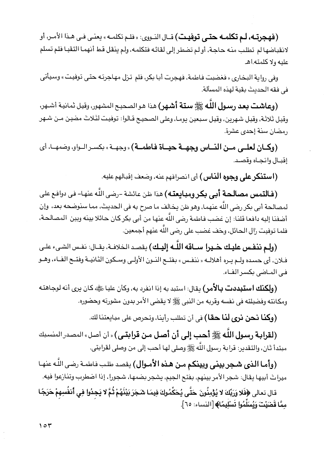 (وكان لعلي من الناس وجهة حياة فاطمة) "وجهة" بكسر الواو وضمها أي إقبال واتجاه وقصد.