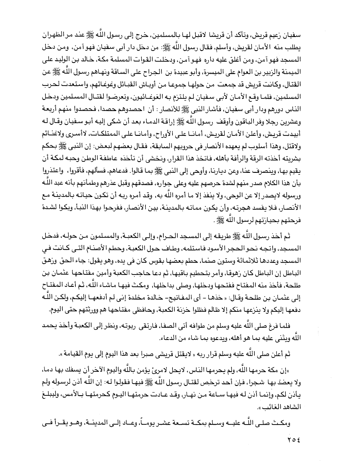 المسلمين فلما وقع الأمان لأبي سفيان لم يلتزم به الغوغائيون وتعرضوا لقتال المسلمين ودخل الناس دورهم ودار أبي سفيان فأشار النبي صلى الله عليه وسلم للأنصار: أن احصدوهم حصدا فحصدوا منهم أربعة وعشرين رجل وفر الباقون وأوقف رسول الله صلى الله عليه وسلم إراقة الدماء بعد أن شكى إليه أبو سفيان وقال له أبيدت قريش وأعلن الأمان لقريش أمانا على الأرواح وأمانا على الممتلكات لا أسرى ولا غنائم ولا قتل وهذا أسلوب لم يعهده الأنصار في حروبهم السابقة فقال بعضهم لبعض: إن النبي صلى الله عليه وسلم يحكم بشريته أخذته الرقة والرأفة بأهله فاتخذ هذا القرار ونخشى أن تأخذه عاطفة الوطن وحبه لمكة أن يقيم بها وينصرف عنا وعن ديارنا وأوحي إلى النبي صلى الله عليه وسلم بما قالوا فدعاهم فسألهم فأقروا واعتذروا بأن هذا الكلام صدر منهم لشدة حرصهم عليه وعلى جواره فصدقهم وقبل عذرهم وطمأنهم بأنه عبد الله ورسوله لا يصدر إلا عن الوحي ولا ينفذ إلا ما أمره الله به وقد أمره ربه أن تكون حياته بالمدينة مع الأنصار فلا يفسد هجرته وأن يكون مماته بالمدينة بين الأنصار ففرحوا بهذا النبأ وبكوا لشدة فرحتهم بحيازتهم لرسول الله صلى الله عليه وسلم.
