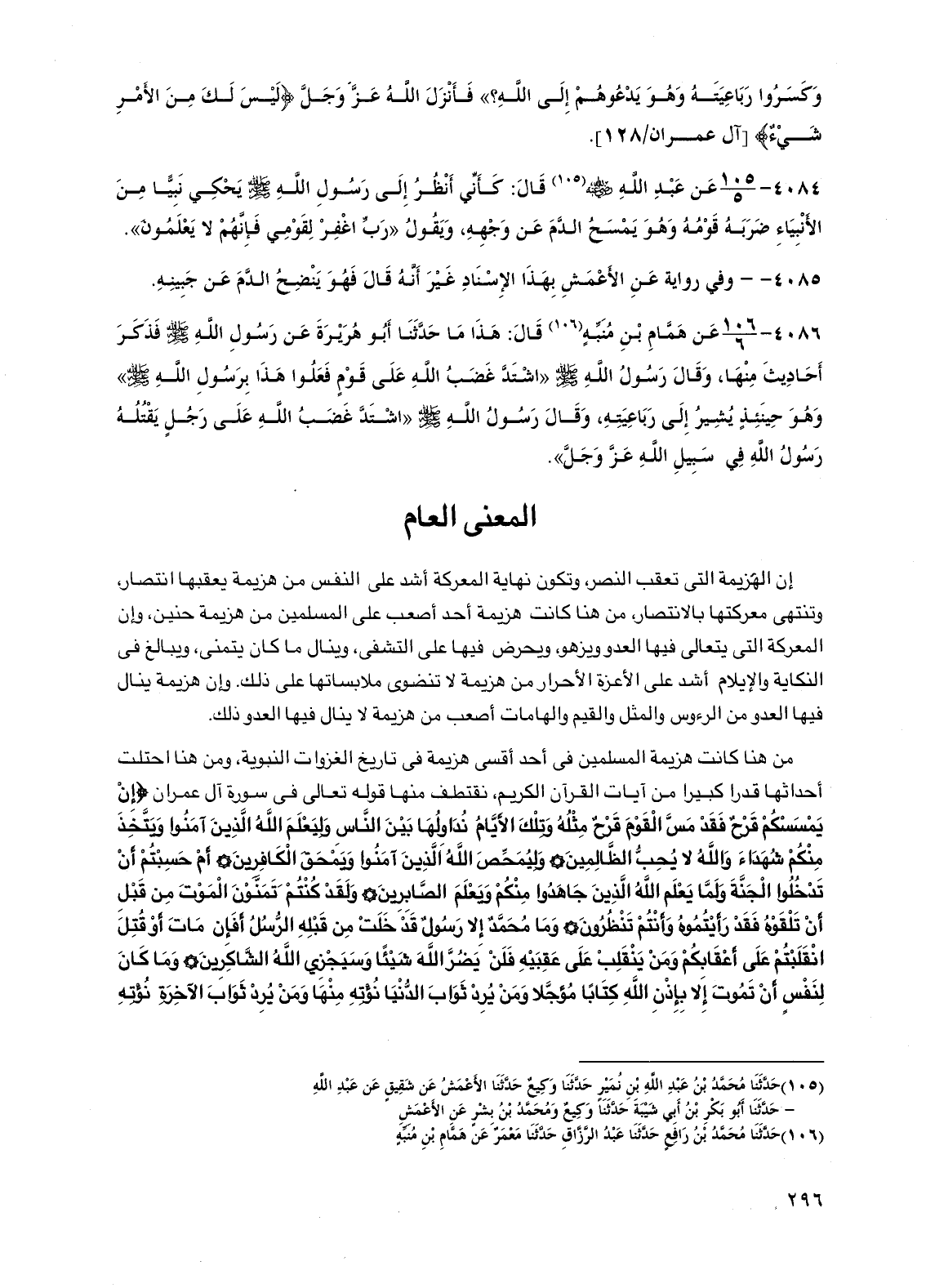 4085 - -/- وفي رواية عن الأعمش بهذا الإسناد غير أنه قال فهو ينضح الدم عن جبينه.