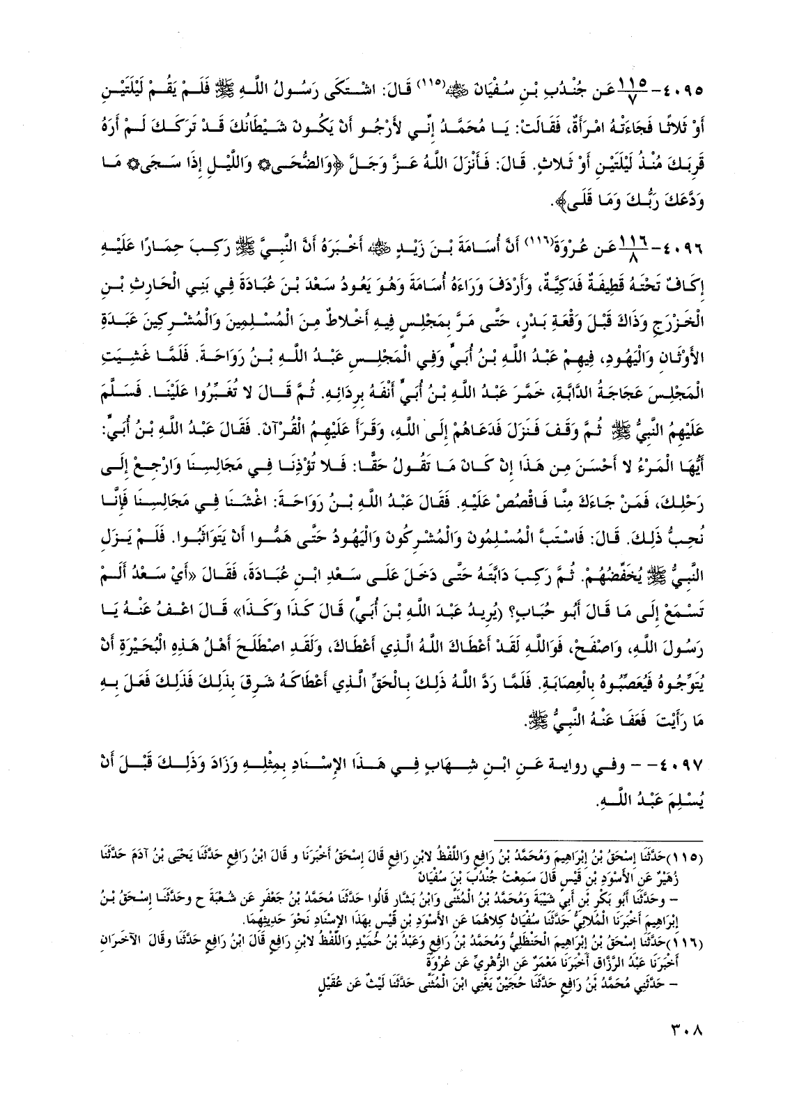 4097 - -/- وفي رواية عن ابن شهاب في هذا الإسناد بمثله وزاد وذلك قبل أن يسلم عبد الله.