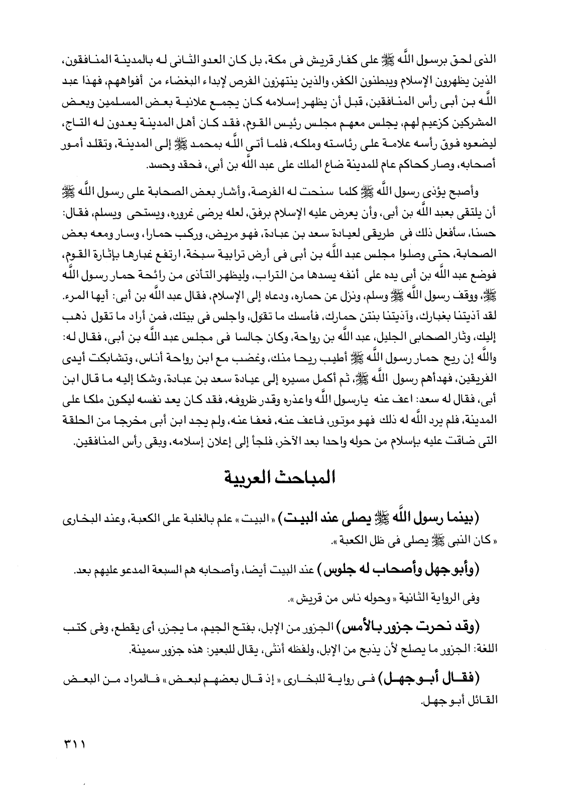 الذي لحق برسول الله صلى الله عليه وسلم على كفار قريش في مكة بل كان العدو الثاني له بالمدينة المنافقون الذين يظهرون الإسلام ويبطنون الكفر والذين ينتهزون الفرص لإبداء البغضاء من أفواههم فهذا عبد الله بن أبي رأس المنافقين قبل أن يظهر إسلامه كان يجمع علانية بعض المسلمين وبعض المشركين كزعيم لهم يجلس معهم مجلس رئيس القوم فقد كان أهل المدينة يعدون له التاج ليضعوه فوق رأسه علامة على رئاسته وملكه فلما أتى الله بمحمد صلى الله عليه وسلم إلى المدينة وتقلد أمور أصحابه وصار كحاكم عام للمدينة ضاع الملك على عبد الله بن أبي فحقد وحسد.
