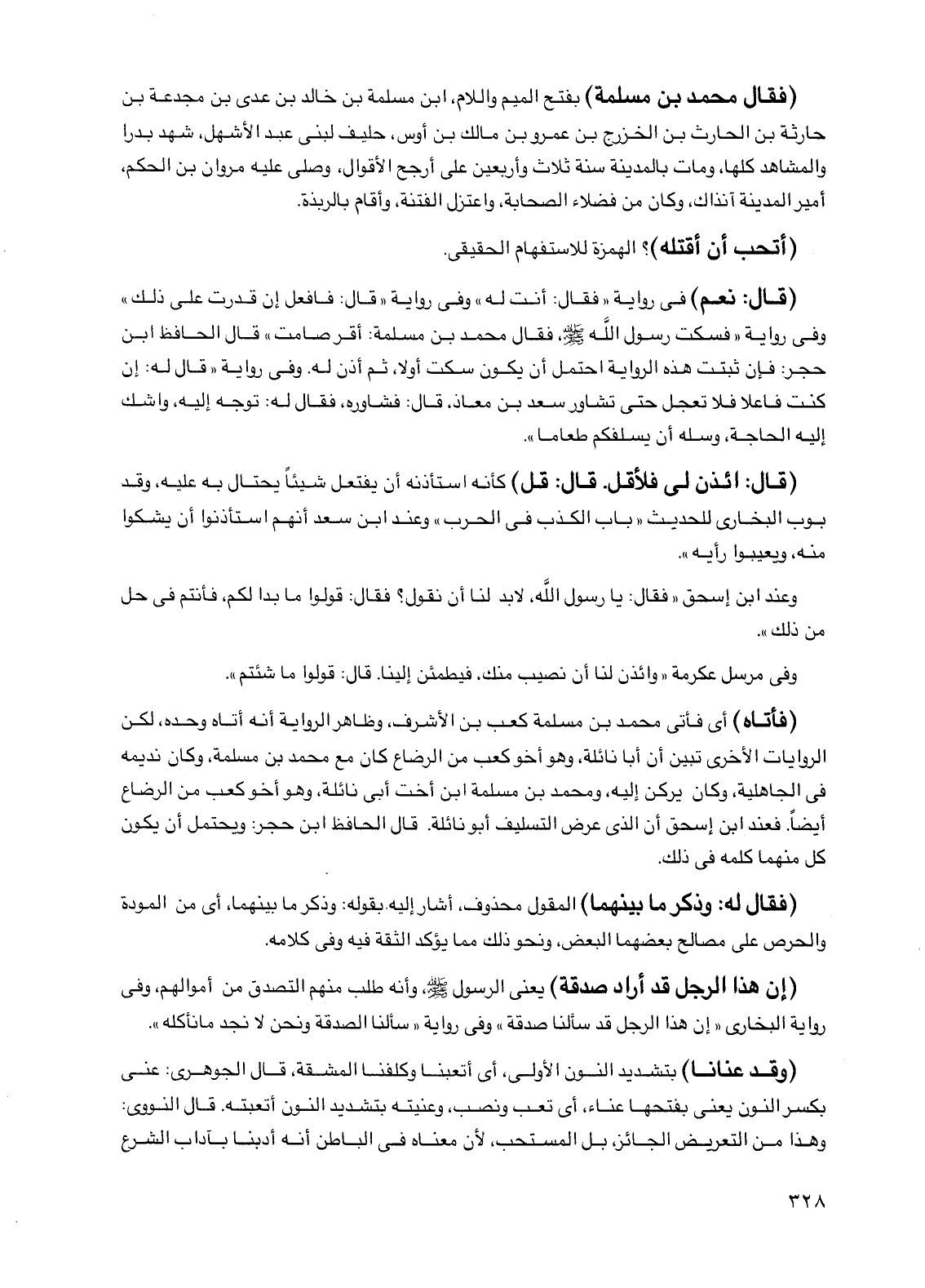 (فقال محمد بن مسلمة) بفتح الميم واللام ابن مسلمة بن خالد بن عدي بن مجدعة بن حارثة بن الحارث بن الخزرج بن عمرو بن مالك بن أوس حليف لبني عبد الأشهل شهد بدرا والمشاهد كلها ومات بالمدينة سنة ثلاث وأربعين على أرجح الأقوال وصلى عليه مروان بن الحكم أمير المدينة آنذاك وكان من فضلاء الصحابة واعتزل الفتنة وأقام بالربذة.