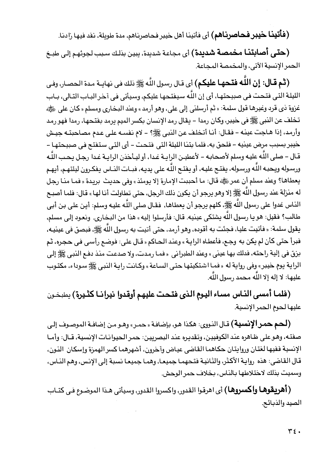 (لحم حمر الإنسية) قال النووي: هكذا هو بإضافة "حمر" وهو من إضافة الموصوف إلى صفته وهو على ظاهره عند الكوفيين، وتقديره عند البصريين: حمر الحيوانات الإنسية، قال: وأما الإنسية ففيها لغتان وروايتان حكاهما القاضي عياض وآخرون، أشهرهما كسر الهمزة وإسكان النون، قال القاضي: هذه رواية الأكثر، والثانية فتحهما جميعا، وهما جميعا نسبة إلى الإنس، وهم الناس، وسميت بذلك لاختلاطها بالناس، بخلاف حمر الوحش.