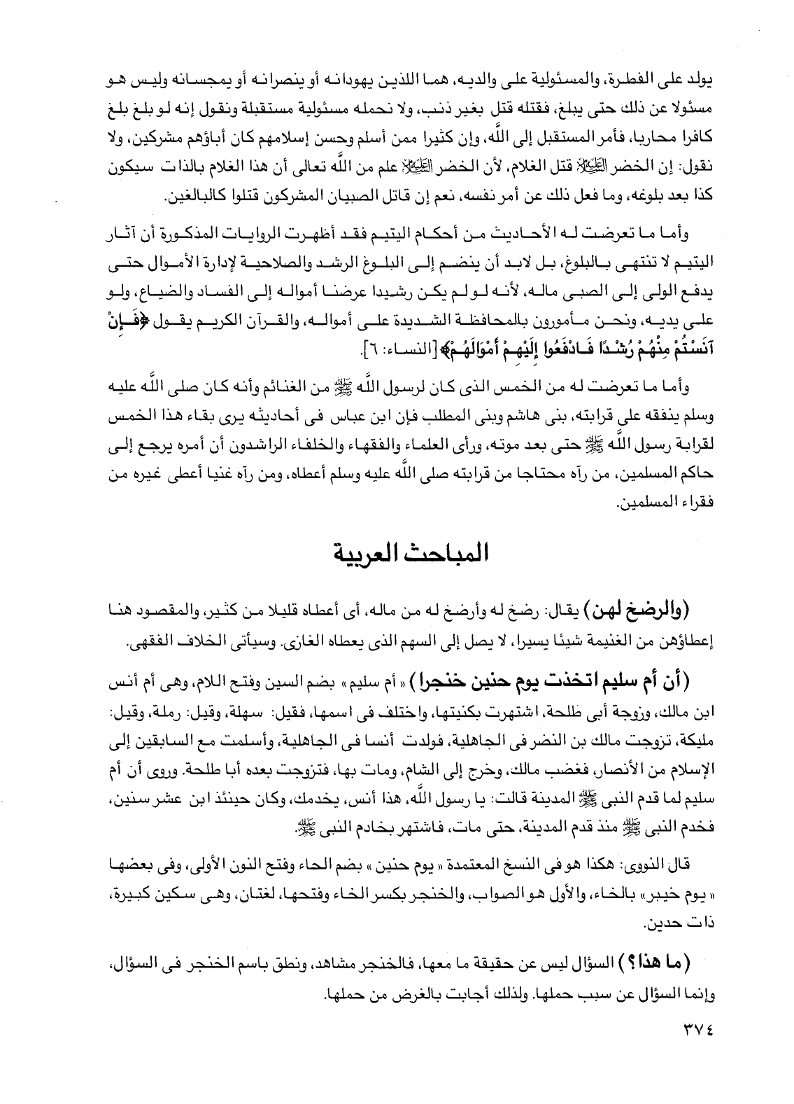وأما ما تعرضت له الأحاديث من أحكام اليتيم فقد أظهرت الروايات المذكورة أن آثار اليتيم لا تنتهي بالبلوغ، بل لا بد أن ينضم إلى البلوغ الرشد والصلاحية لإدارة الأموال حتى يدفع الولي إلى الصبي ماله، لأنه لو لم يكن رشيدا عرضنا أمواله إلى الفساد والضياع، ولو على يديه، ونحن مأمورون بالمحافظة الشديدة على أمواله، والقرآن الكريم يقول {فإن آنستم منهم رشدا فادفعوا إليهم أموالهم} [النساء: 6]