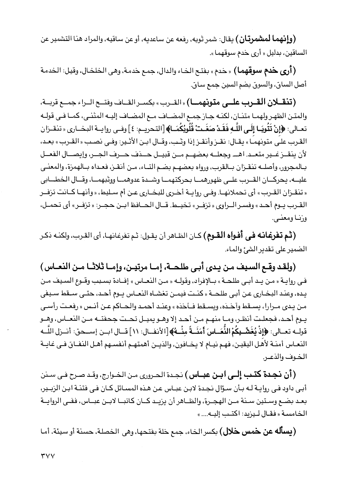 (وإنهما لمشمرتان) يقال: شمر ثوبه، رفعه عن ساعديه، أو عن ساقيه، والمراد هنا التشمير عن الساقين، بدليل "أرى خدم سوقهما".