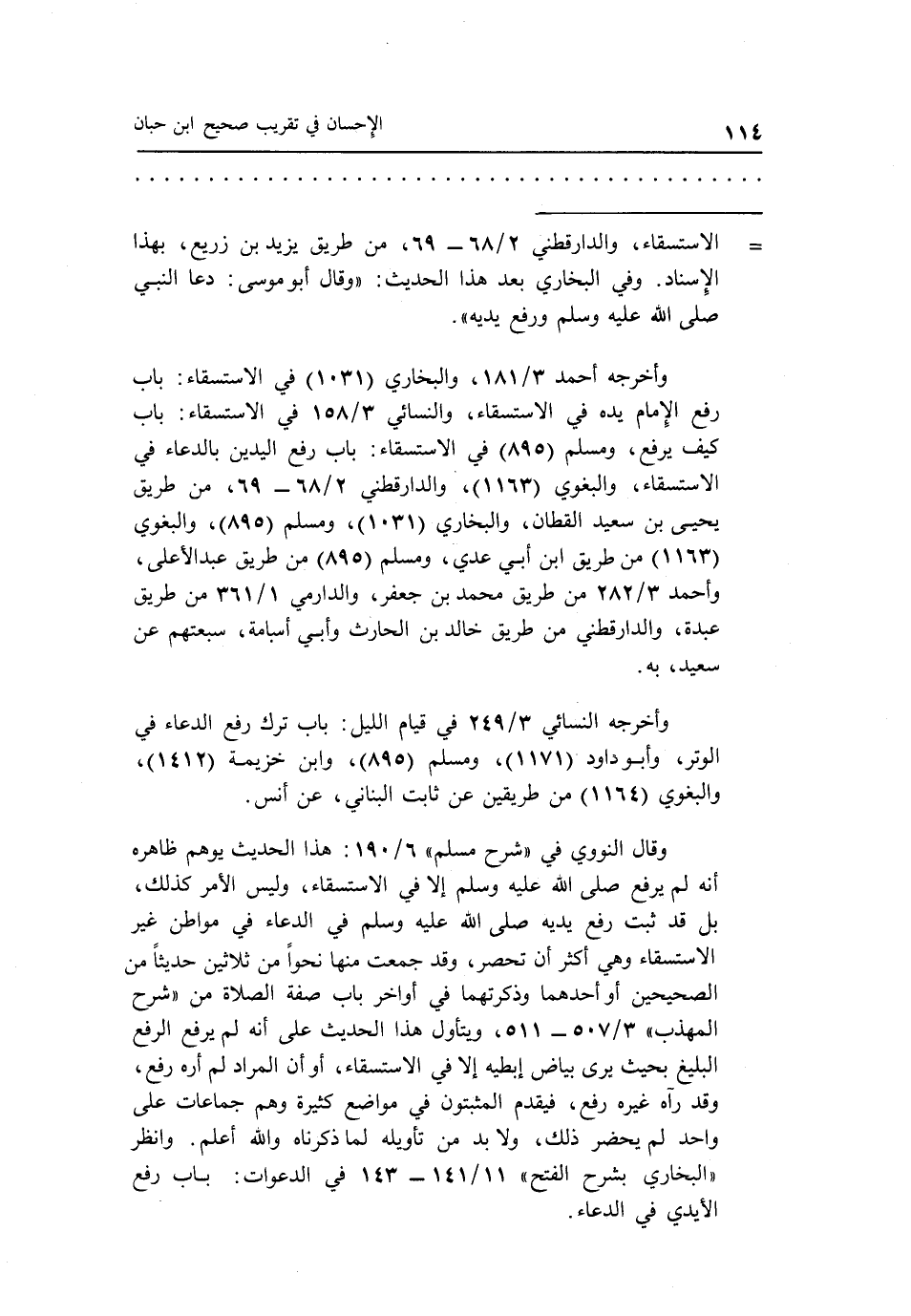 = الاستسقاءن والدارقطني "2/68-69"، من طريق يزيد بن زريع، بهذا الإسناد. وفي البخاري بعد هذا الحديث: "وقال أبو موسى: دعا النبي صلى الله عليه وسلم ورفع يديه".