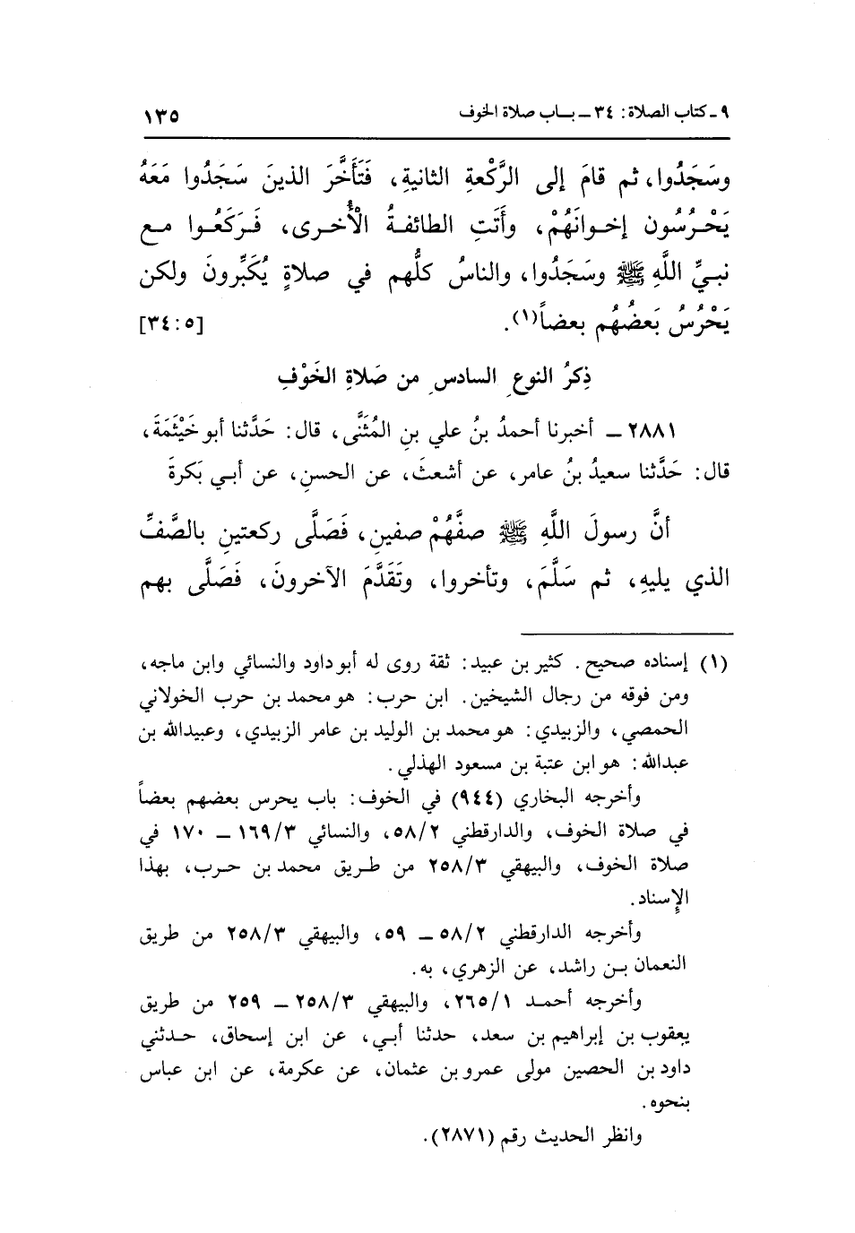 وأخرجه البخاري "944" في الخوف: باب يحرس بعضهم بعضاً في صلاة الخوف، والدارقطني "2/58"، والنسائي "3/169-170" في صلاة الخوف، والبيهقي "3/258" من طريق محمد بن حرب، بهذا الإسناد.