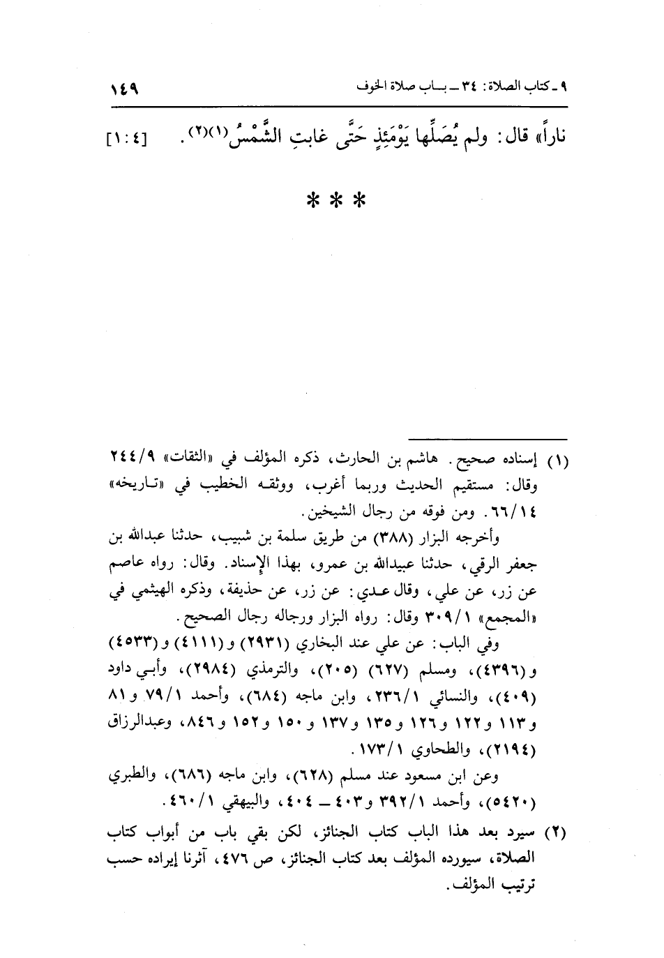 2 سيرد بعد هذا الباب كتاب الجنائز: لكن بقي باب من أبواب كتاب الصلاة، وسيورده المؤلف بعد كتاب الجنائز: ص476"، آثرنا إيراده حسب ترتيب المؤلف.
