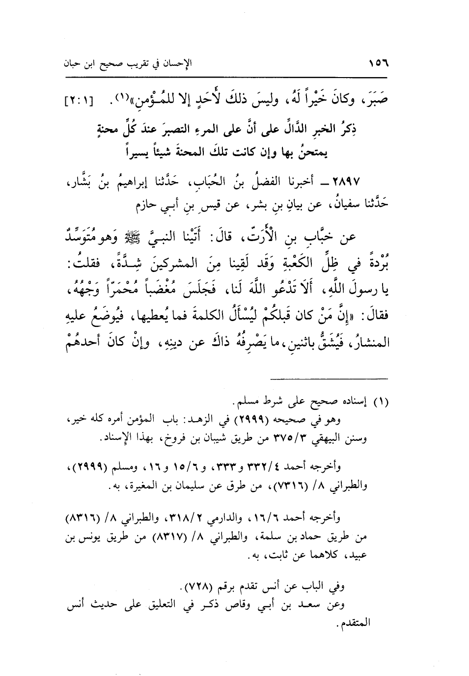 صَبَرَ وَكَانَ خَيْرًا لَهُ وَلَيْسَ ذَلِكَ لِأَحَدٍ إلا للمؤمن" 1. [2:1]