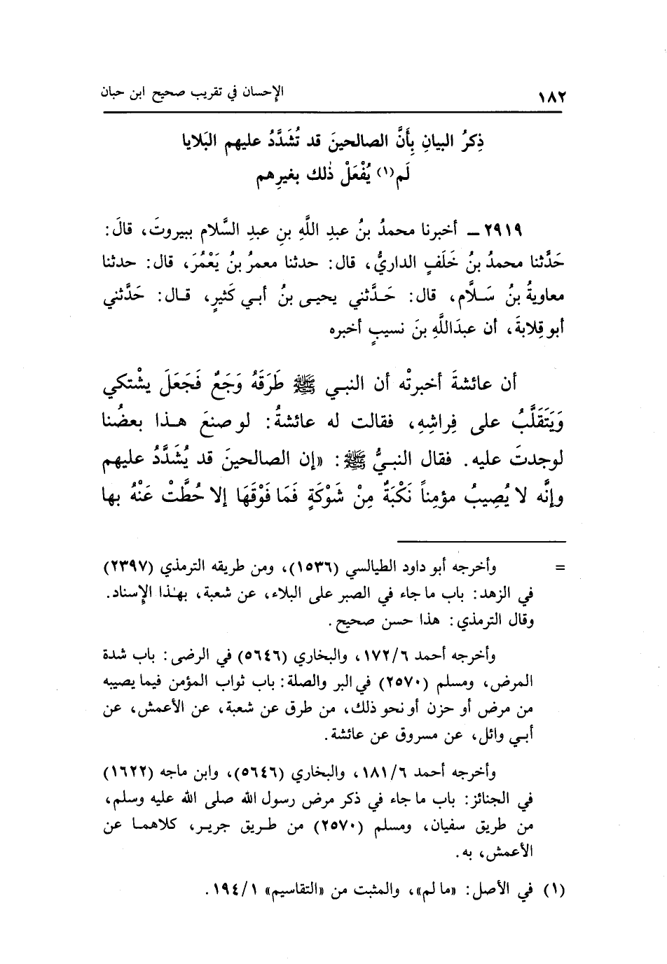 ذِكْرُ الْبَيَانِ بِأَنَّ الصَّالِحِينَ قَدْ تُشَدَّدُ عَلَيْهِمِ الْبَلَايَا لَمْ 1 يُفْعَلْ ذَلِكَ بِغَيرِهِمْ