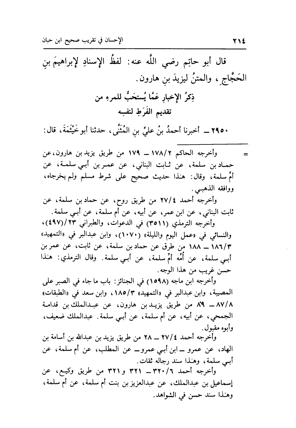 قال أبو حاتم رضى الله تعالى عَنْهُ: لَفْظُ الْإِسْنَادِ لِإِبْرَاهِيمَ بْنِ الْحَجَّاجِ وَالْمَتْنُ ليزيد بن هارون.