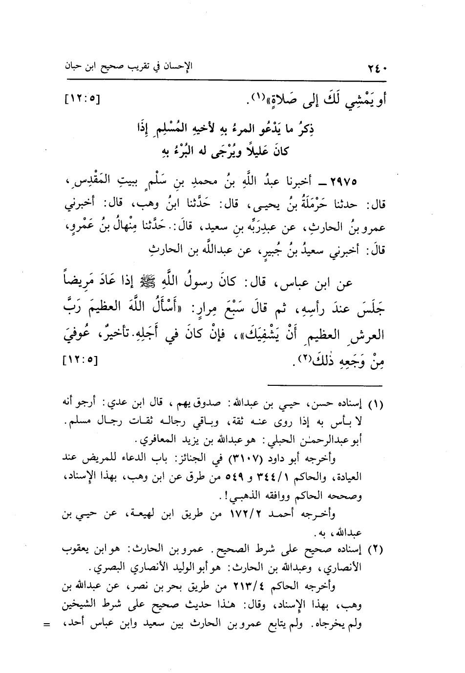 2975 - أَخْبَرَنَا عَبْدُ اللَّهِ بْنُ مُحَمَّدِ بْنِ سَلْمٍ بِبَيْتِ الْمَقْدِسِ قَالَ: حَدَّثَنَا حَرْمَلَةُ بْنُ يَحْيَى قَالَ: حَدَّثَنَا بن وَهْبٍ قَالَ: أَخْبَرَنِي عَمْرُو بْنُ الْحَارِثِ عَنْ عَبْدِ رَبِّهِ بْنِ سَعِيدٍ قَالَ: حَدَّثَنَا مِنْهَالُ بْنُ عَمْرٍو قَالَ: أَخْبَرَنِي سَعِيدُ بْنُ جُبَيْرٍ عن عبد الله بن الحارث