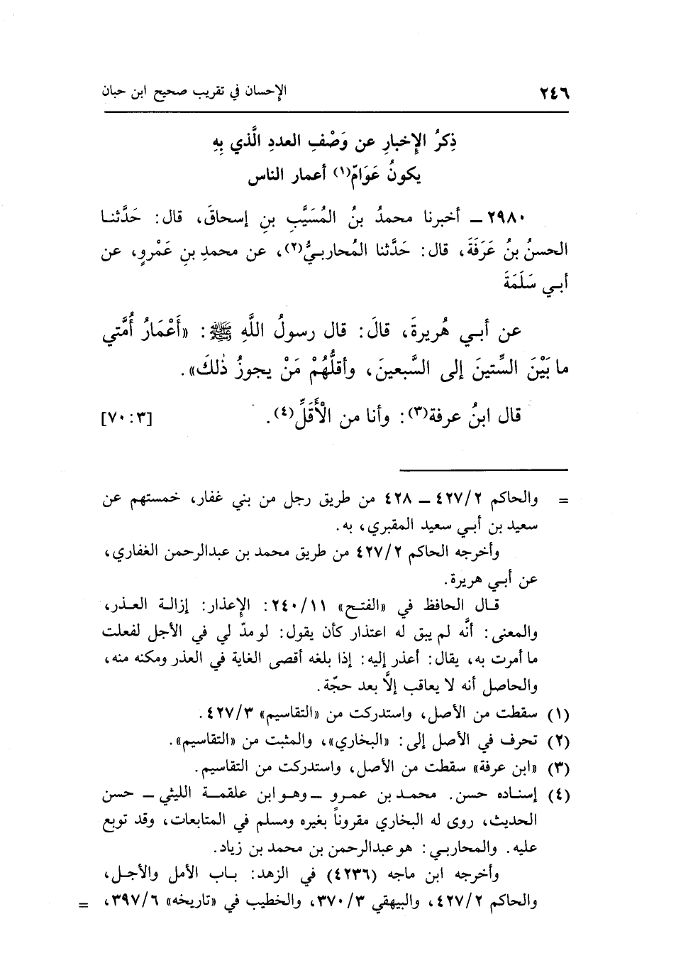 ذِكْرُ الْإِخْبَارِ عَنْ وَصْفِ الْعَدَدِ الَّذِي بِهِ يَكُونُ عَوَامُّ 1 أَعْمَارِ النَّاسِ