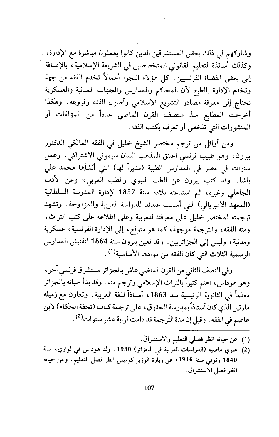 (¬2) هنري ماصيه (الدراسات العربية في الجزائر) 1930. ولد هوداس في لواري، سنة 1840 وتوفي سنة 1916، عن زيارة الوزير كومبس انظر فصل التعليم. وعن حياته انظر فصل الاستشراق.