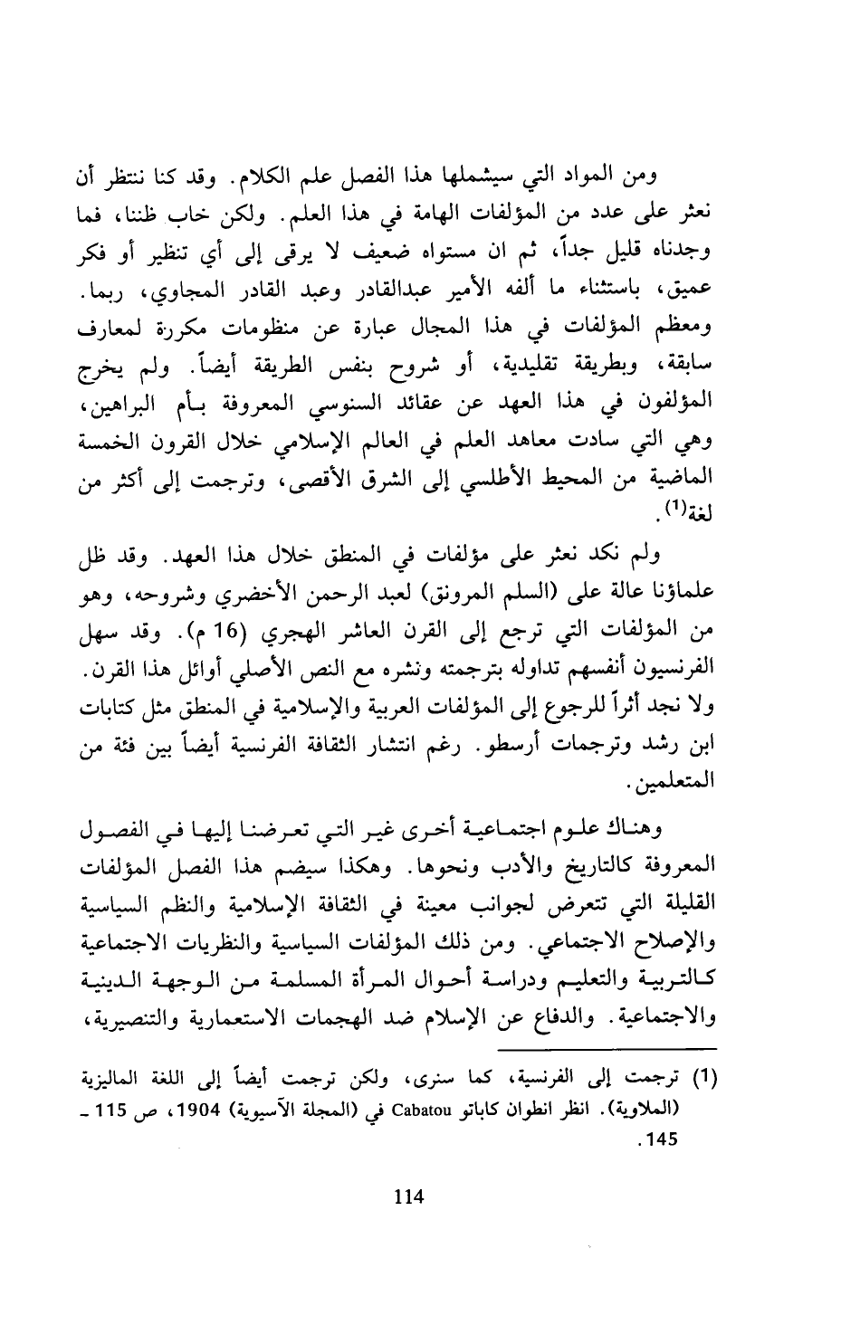 (¬1) ترجمت إلى الفرنسية، كما سنرى، ولكن ترجمت أيضا إلى اللغة الماليزية (الملاوية). انظر انطوان كاباتو Cabatou في (المجلة الآسيوية) 1904، ص 115? 145.