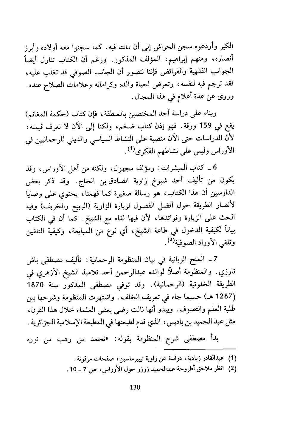 (¬2) انظر ملاحق أطروحة عبد الحميد زوزو حول الأوراس، ص 7 - 10.