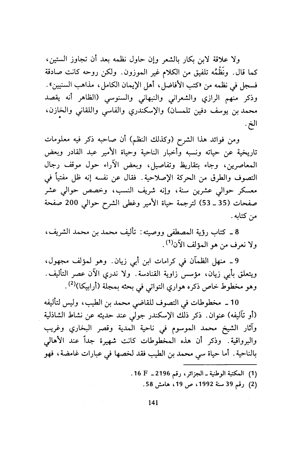 (¬1) المكتبة الوطنية - الجزائر، رقم 2196 - F 16 .
