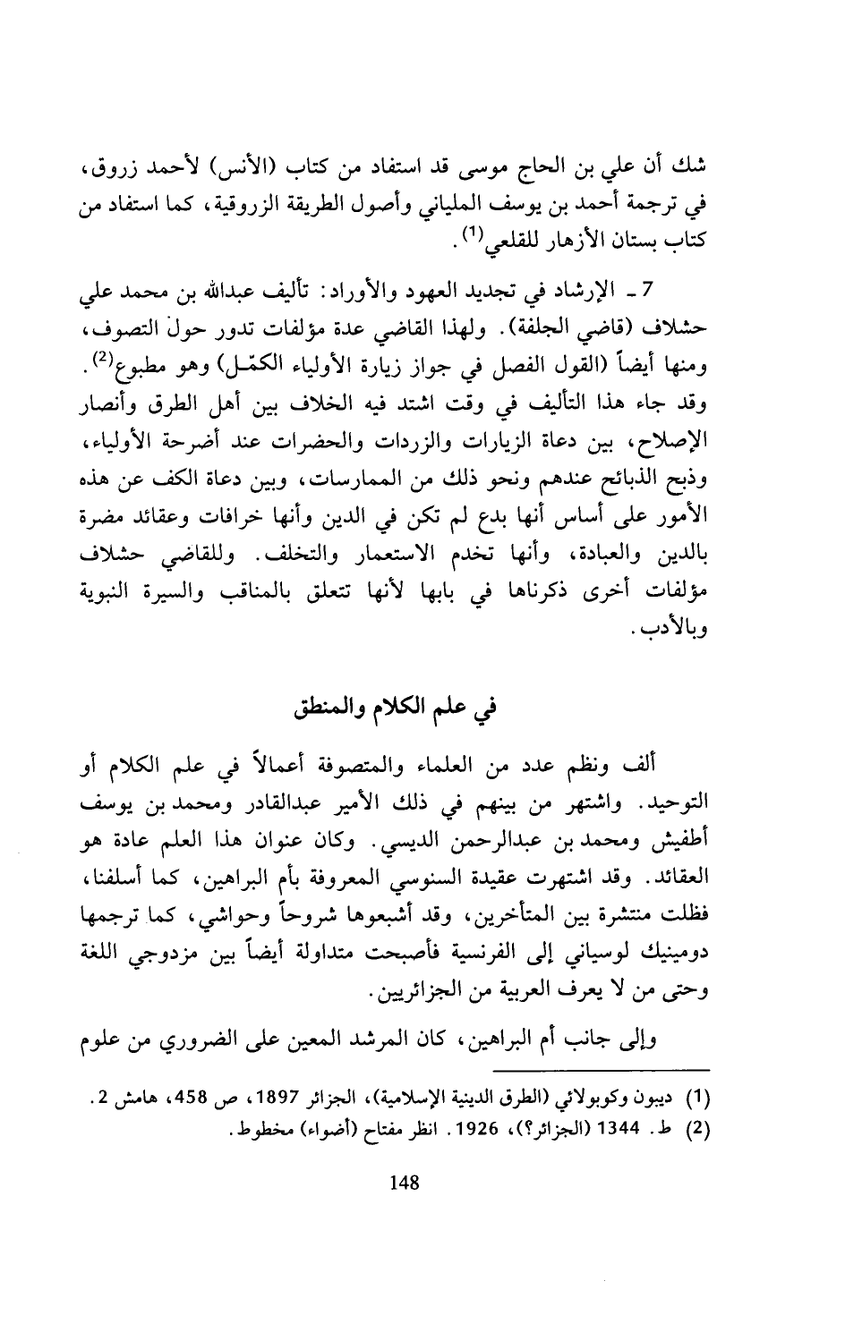 (¬1) ديبون وكوبولاني (الطرق الدينية الإسلامية)، الجزائر 1897، ص 458، هامش 2.