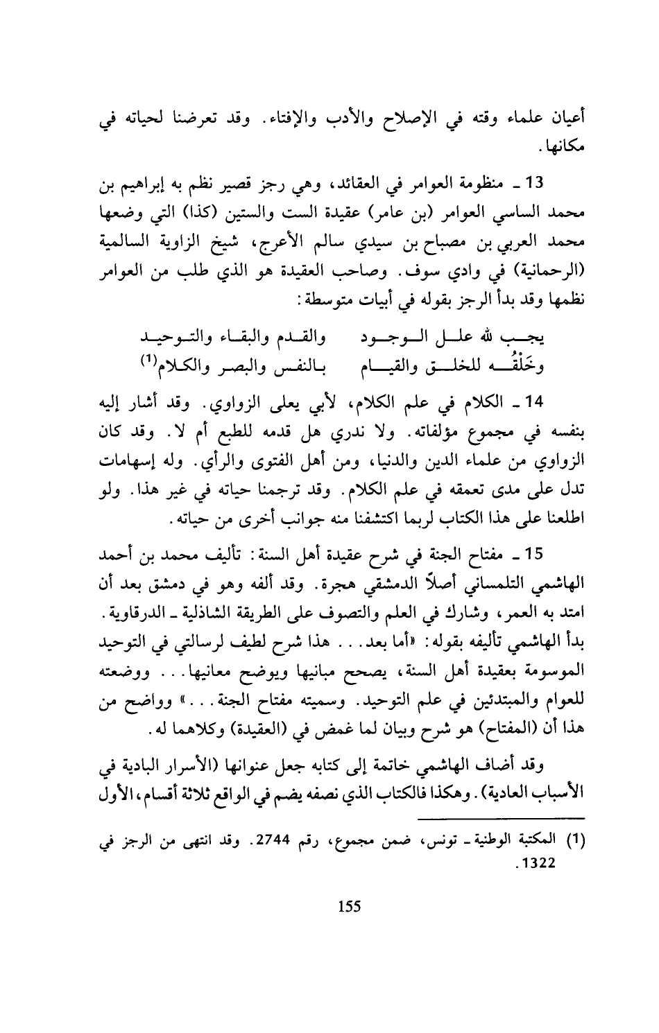 (¬1) المكتبة الوطنية - تونس، ضمن مجموع، رقم 2744. وقد انتهى من الرجز في 1322.