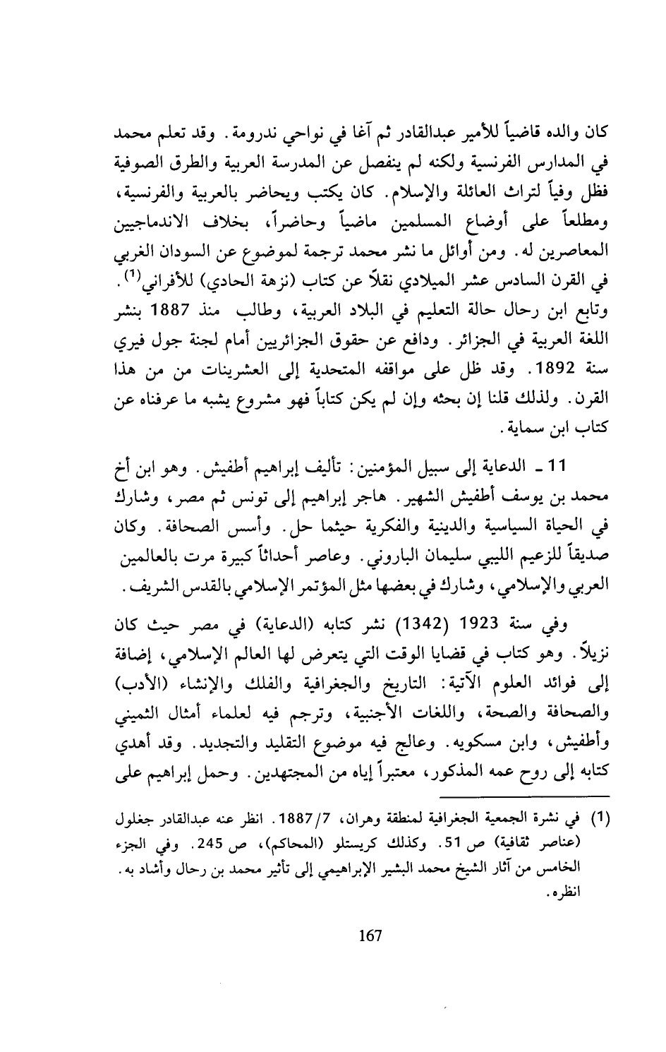 (¬1) في نشرة الجمعية الجغرافية لمنطقة وهران، 7/ 1887. انظر عنه عبد القادر جغلول (عناصر ثقافية) ص 51. وكذلك كريستلو (المحاكم)، ص 245. وفي الجزء الخامس من آثار الشيخ محمد البشير الإبراهيمي إلى تأثير محمد بن رحال وأشاد به. انظره.