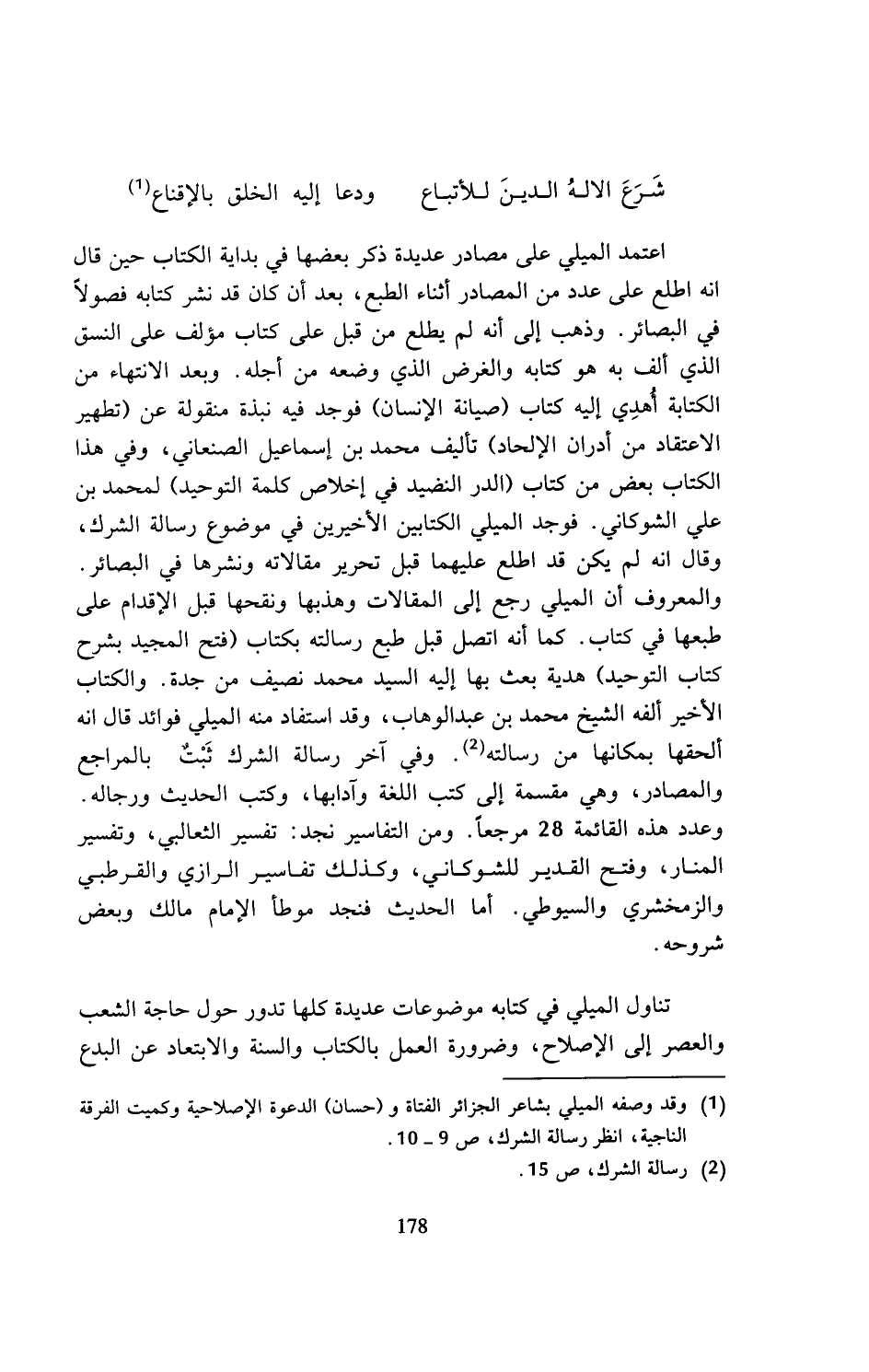 (¬1) وقد وصفه الميلي بشاعر الجزائر الفتاة و (حسان) الدعوة الإصلاحية وكميت الفرقة الناجية، انظر رسالة الشرك، ص 9 - 10.