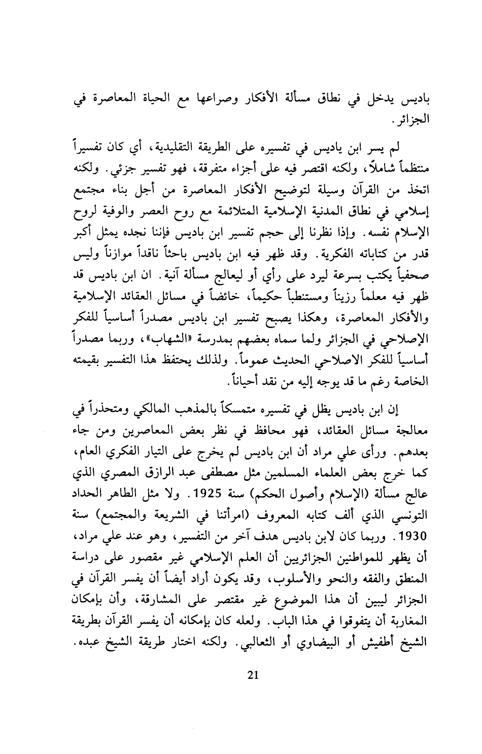 باديس يدخل في نطاق مسألة الأفكار وصراعها مع الحياة المعاصرة في الجزائر.