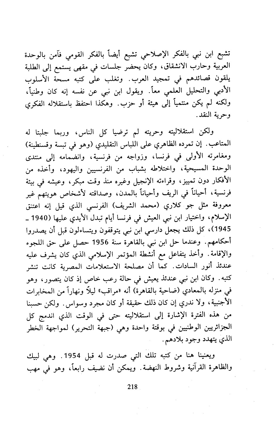 ويعنينا هنا من كتبه تلك التي صدرت له قبل 1954. وهي لبيك والظاهرة القرآنية وشروط النهضة. ويمكن أن نضيف رابعا، وهو في مهب