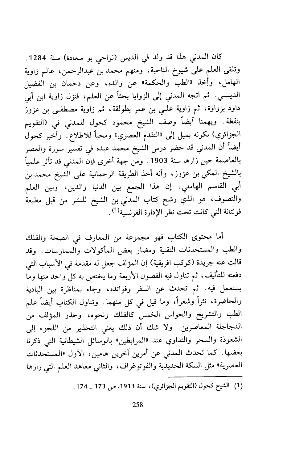 (¬1) الشيخ كحول (التقويم الجزائري)، سنة 1913، ص 173 - 174.