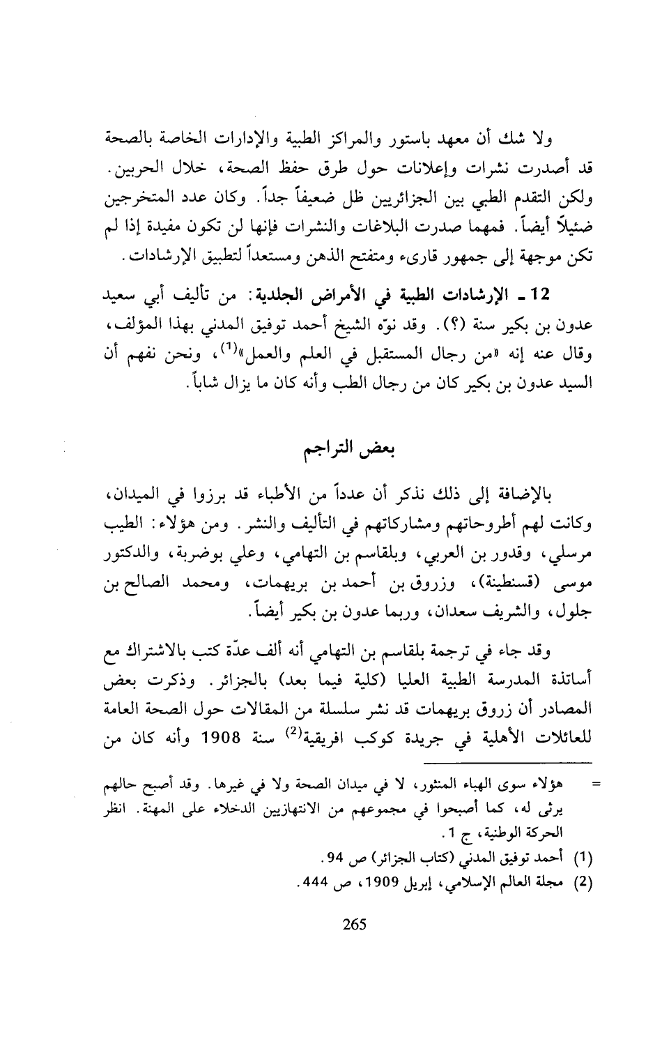 = هؤلاء سوى الهباء المنثور، لا في ميدان الصحة ولا في غيرها. وقد أصبح حالهم يرثى له، كما أصبحوا في مجموعهم من الانتهازيين الدخلاء على المهنة. انظر الحركة الوطنية، ج 1.