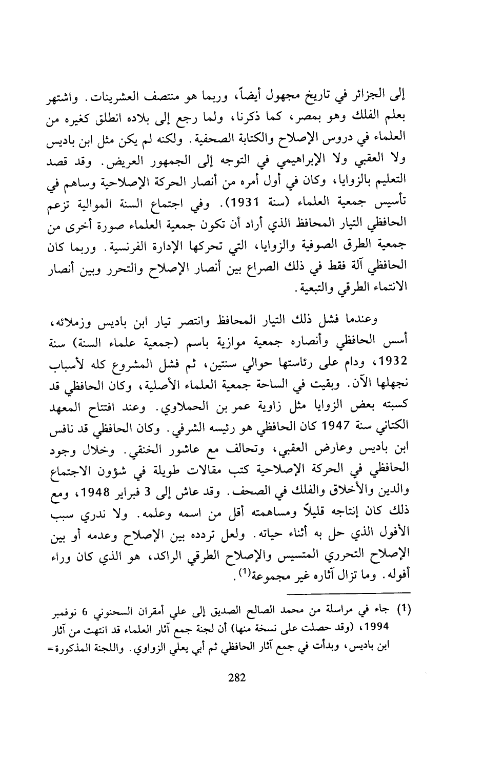 (¬1) جاء في مراسلة من محمد الصالح الصديق إلى علي أمقران السحنوني 6 نوفمبر 1994، (وقد حصلت على نسخة منها) أن لجنة جمع آثار العلماء قد انتهت من آثار ابن باديس، وبدأت في جمع آثار الحافظي ثم أبي يعلي الزواوي. واللجنة المذكورة =