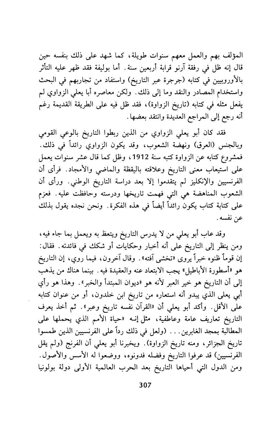 المؤلف بهم والعمل معهم سنوات طويلة، كما شهد على ذلك بنفسه حين قال إنه ظل في رفقة آرنو قرابة أربعين سنة. أما بوليفة فقد ظهر عليه التأثر بالأوروبيين في كتابه (جرجرة عبر التاريخ) واستفاد من تجاربهم في البحث واستخدام المصادر والنقد وما إلى ذلك. ولكن معاصره أبا يعلي الزواوي لم يفعل مثله في كتابه (تاريخ الزواوة)، فقد ظل فيه على الطريقة القديمة رغم أنه رجع إلى المراجع العديدة وانتقد بعضها.