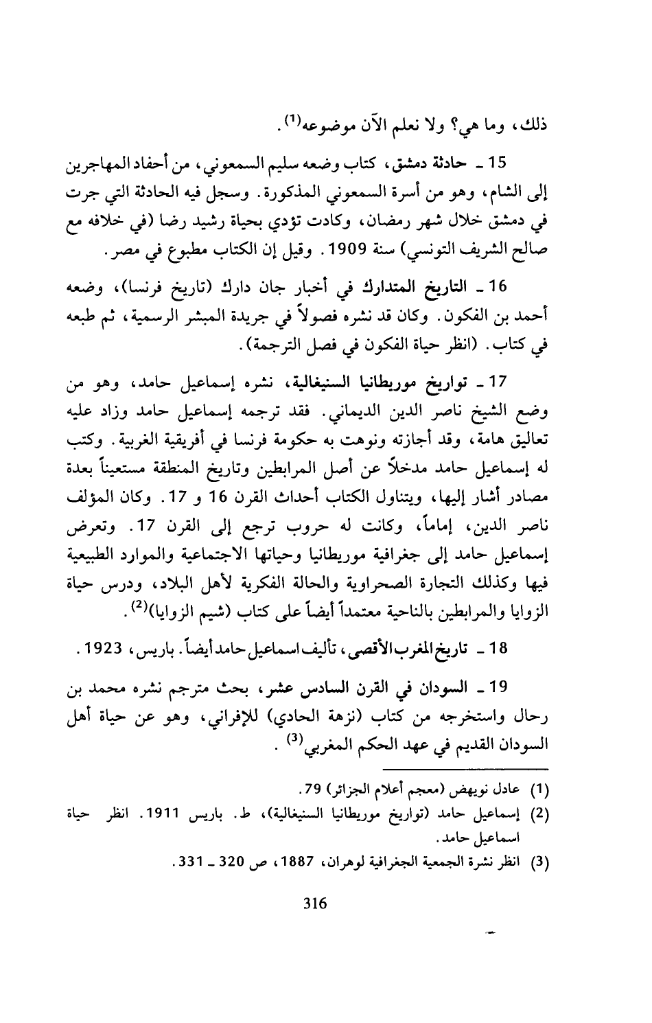 (¬2) إسماعيل حامد (تواريخ موريطانيا السنيغالية)، ط. باريس 1911. انظر حياة اسماعيل حامد.