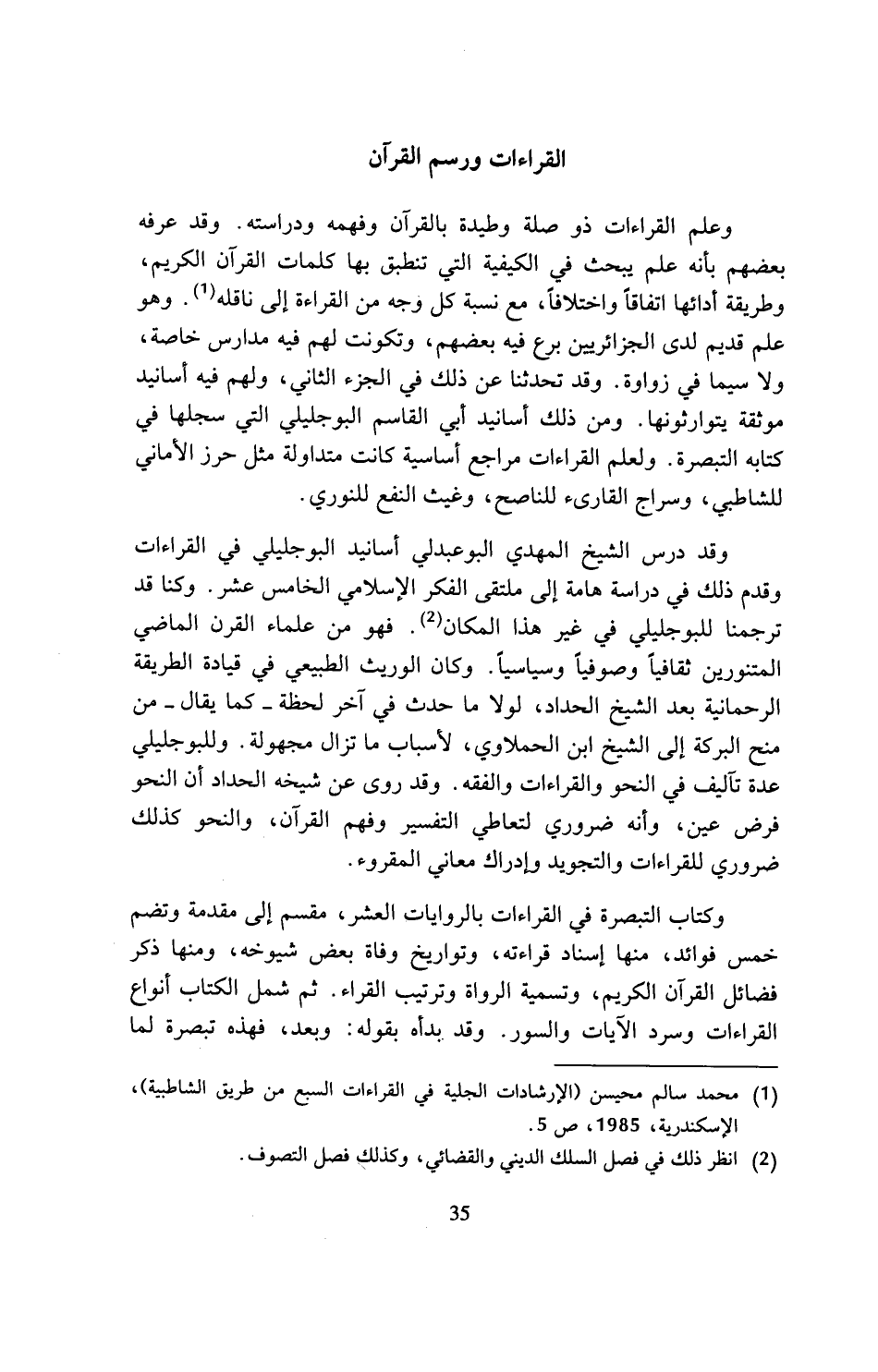 (¬1) محمد سالم محيسن (الإرشادات الجلية في القراءات السبع من طريق الشاطبية)، الإسكندرية، 1985، ص 5.