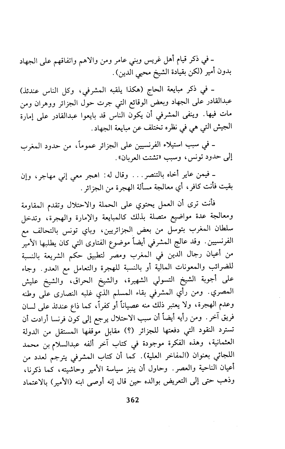 - في سبب استيلاء الفرنسيين على الجزائر عموما، من حدود المغرب إلى حدود تونس، وسبب (تشتت العربان).