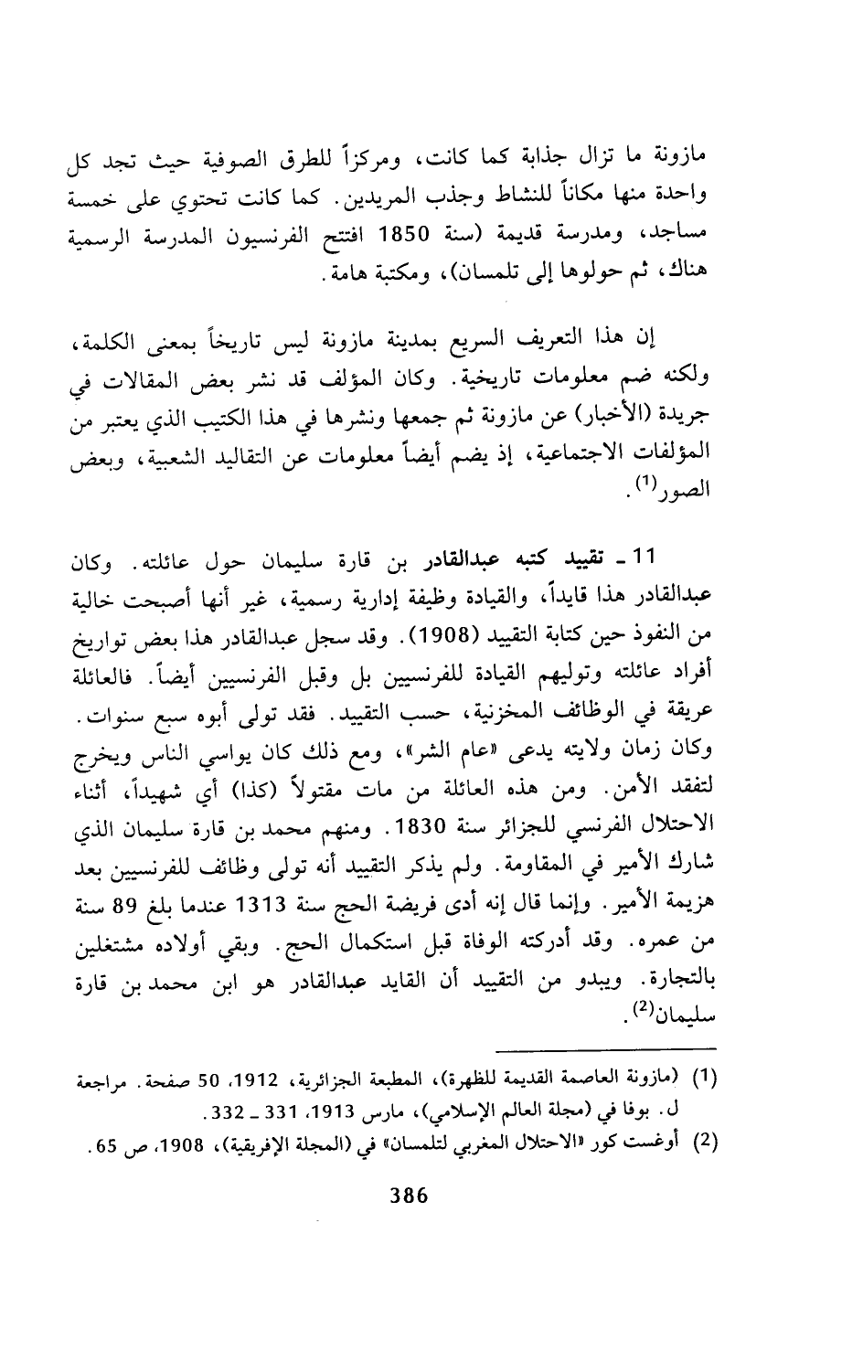 (¬2) أوغست كور (الاحتلال المغربي لتلمسان) في (المجلة الإفريقية)، 1908، ص 65.