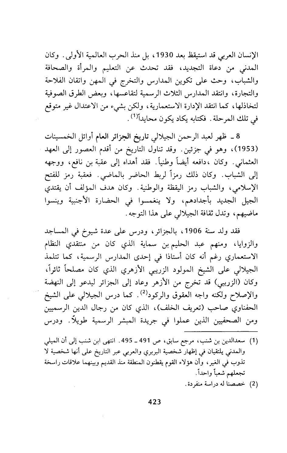 (¬1) سعد الدين بن شنب، مرجع سابق، ص 491 - 495. انتهى ابن شنب إلى أن الميلي والمدني يلتقيان في إظهار شخصية البربري والعربي عبر التاريخ على أنها شخصية لا تذوب في الغير، وأن هؤلاء القوم يقطنون المنطقة منذ القديم وبينهما علاقات راسخة تجعلهم شعبا واحدا.