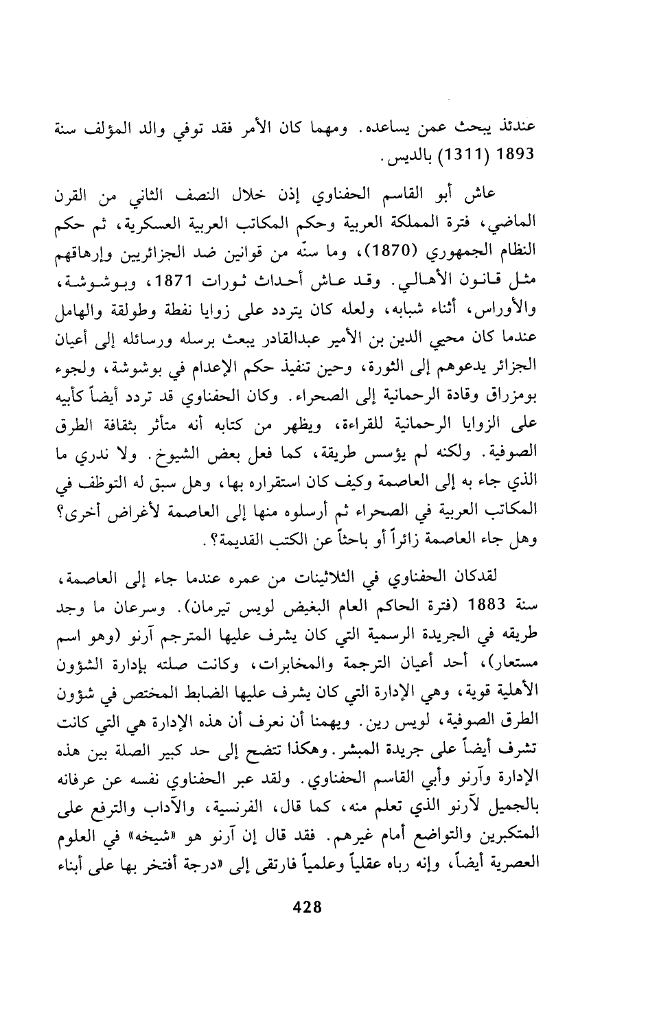 عندئذ يبحث عمن يساعده. ومهما كان الأمر فقد توفي والد المؤلف سنة 1893 (1311) بالديس.