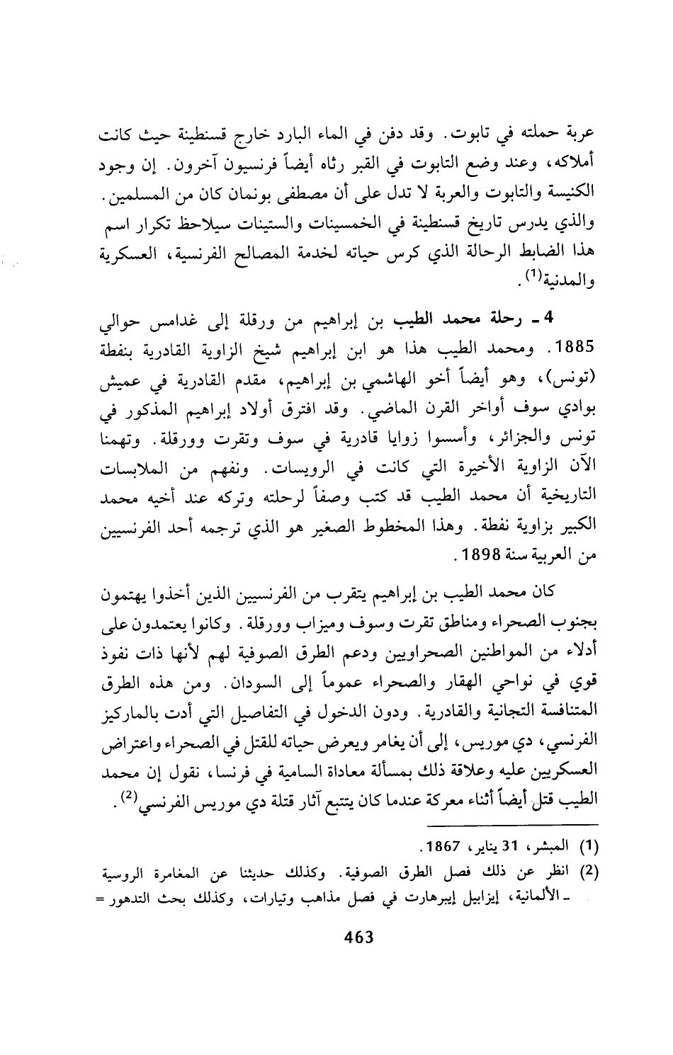 (¬2) انظر عن ذلك فصل الطرق الصوفية. وكذلك حديثنا عن المغامرة الروسية? الألمانية، إيزابيل إيبرهارت في فصل مذاهب وتيارات، وكذلك بحث التدهور =