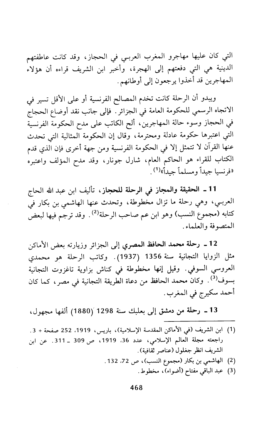 (¬1) ابن الشريف (في الأماكن المقدسة الإسلامية)، باريس، 1919، 252 صفحة + 3. راجعته مجلة العالم الإسلامي، عدد 36، 1919، ص 309 - 311. عن ابن الشريف انظر جغلول (عناصر ثقافية).