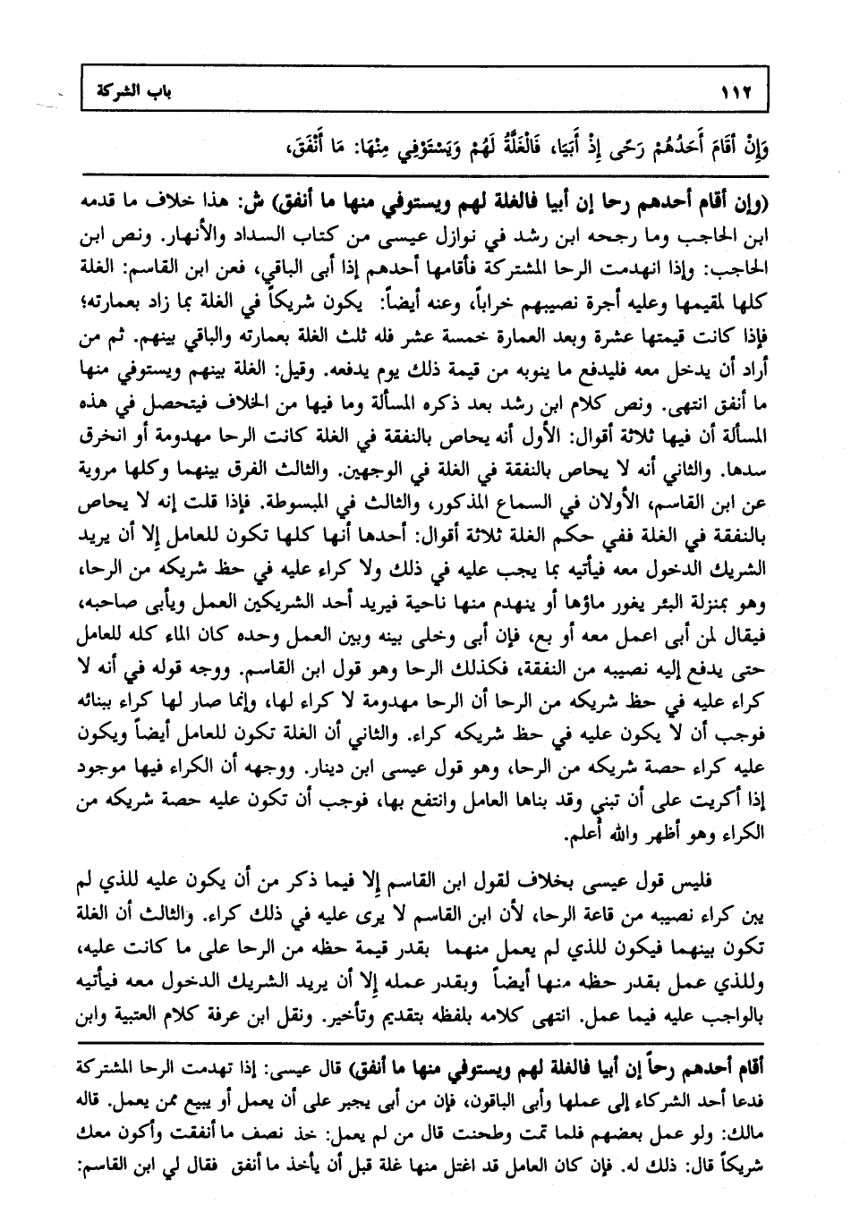 فليس قول عيسى بخلاف لقول ابن القاسم إلا فيما ذكر من أن يكون عليه للذي لم يبن كراء نصيبه من قاعة الرحى؛ لأن ابن القاسم لا يرى عليه في ذلك كراء، والثالث أن الغلة تكون بينهما فيكون للذي لم يعمل منهما بقدر قيمة حظه من الرحى على ما كانت عليه، وللذي عمل بقدر حظه منها أيضا، وبقدر عمله إلا أن يريد الشريك الدخول معه فيأتيه بالواجب عليه فيما عمل انتهى. كلامه بلفظه بتقديم، وتأخير. ونقل ابن عرفة كلام العتبية وابن