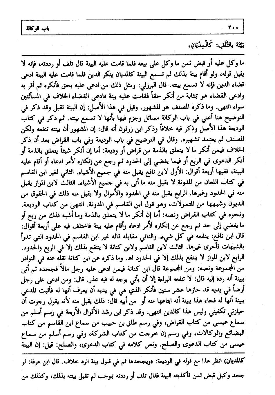 ما وكل عليه أو قبض ثمن ما وكل على بيعه، فلما قامت عليه البينة قال: تلف أو رددته فإنه لا يقبل قوله ولو أقام بينة بذلك لم تسمع البينة كالمديان ينكر الدين فلما قامت عليه البينة ادعى قضاء الدين، فإنه لا تسمع بينته قال البرزلي: ومثل ذلك من ادعى عليه بحق فأنكره، ثم أقر به، وادعى القضاء هو بمثابة من أنكر حقا فقامت عليه بينة، فادعى القضاء الخلاف في المسألتين سواء انتهى. وما ذكره المصنف هو المشهور وقيل في هذا: الأصل إن البينة تقبل، وقد ذكر في التوضيح هنا أعني في باب الوكالة مسائل وجزم فيها بأنها لا تسمع بينته، ثم ذكر في كتاب الوديعة هذا الأصل وذكر فيه خلافا وذكر ابن زرقون أنه قال إن المشهور أن بينته تنفعه ولكن المصنف لم يعتمد تشهيره وقال في التوضيح في باب الوديعة وفي باب القراض: بعد أن ذكرا الخلاف فيمن أنكر ما لا يتعلق بالذمة من قراض أو وديعة أما إن أنكر شيئا يتعلق بالذمة أو أنكر الدعوى في الربع أو فيما يفضي إلى الحدود، ثم رجع عن إنكاره لأمر ادعاه أو أقام عليه البينة ففيها أربعة أقوال الأول لابن نافع يقبل منه في جميع الأشياء الثاني لغير ابن القاسم في كتاب اللعان من المدونة لا يقبل منه ما أتى به في جميع الأشياء. الثالث: لابن المواز يقبل منه في الحدود وغيرها الرابع: يقبل منه في الحدود والأموال ولا يقبل منه ذلك في الحقوق من الديون وشبهها من المتمولات وهو قول ابن القاسم في المدونة انتهى من كتاب الوديعة ونحوه في كتاب القراض. ونصه أما إن أنكر ما لا يتعلق بالذمة وما أشبه ذلك من ربع أو ما يفضي إلى حد، ثم رجع عن إنكاره لأمر ادعاه وأقام عليه بينة فاختلف فيه على أربعة أقوال قال ابن نافع ينفعه في كل شيء والثاني مقابله قاله غير ابن القاسم في الحدود التي تدرأ بالشبهات، فأحرى غيرها، الثالث لابن القاسم ولابن كنانة لا ينتفع بذلك إلا في الربع والحدود. الرابع: لابن المواز لا ينتفع بذلك إلا في الحدود ا. هـ. وما ذكره عن ابن كنانة نقله عنه في النوادر من المجموعة ونصه ومن المجموعة قال ابن كنانة فيمن ادعى عليه رجل مالا فجحده، ثم أتى ببينة أنه رده إليه قال: لا تنفعه البراءة إلا أن يأتي بوجه له فيه عذر قال: ومن ادعى على رجل أرضا في يديه قد حازها عشر سنين، فأنكر الذي هي في يديه أن يعرف أنها له فأثبت المدعي ببينة أنها له، فجاء هذا ببينة أنه ابتاعها منه أو من أبيه قال: ذلك يقبل منه؛ لأنه يقول رجوت أن حيازتي تكفيني، وليس هذا كالدين انتهى. وقد ذكر ابن رشد الأقوال الأربعة في رسم أسلم من سماع عيسى من كتاب القراض وفي رسم طلق بن حبيب من سماع ابن القاسم من كتاب البضائع والوكالات وفي رسم إن خرجت من كتاب الشركة وفي رسم أسلم من سماع عيسى من كتاب الدعوى والصلح ونص كلامه في كتاب الدعوى والصلح: قيل إن البينة