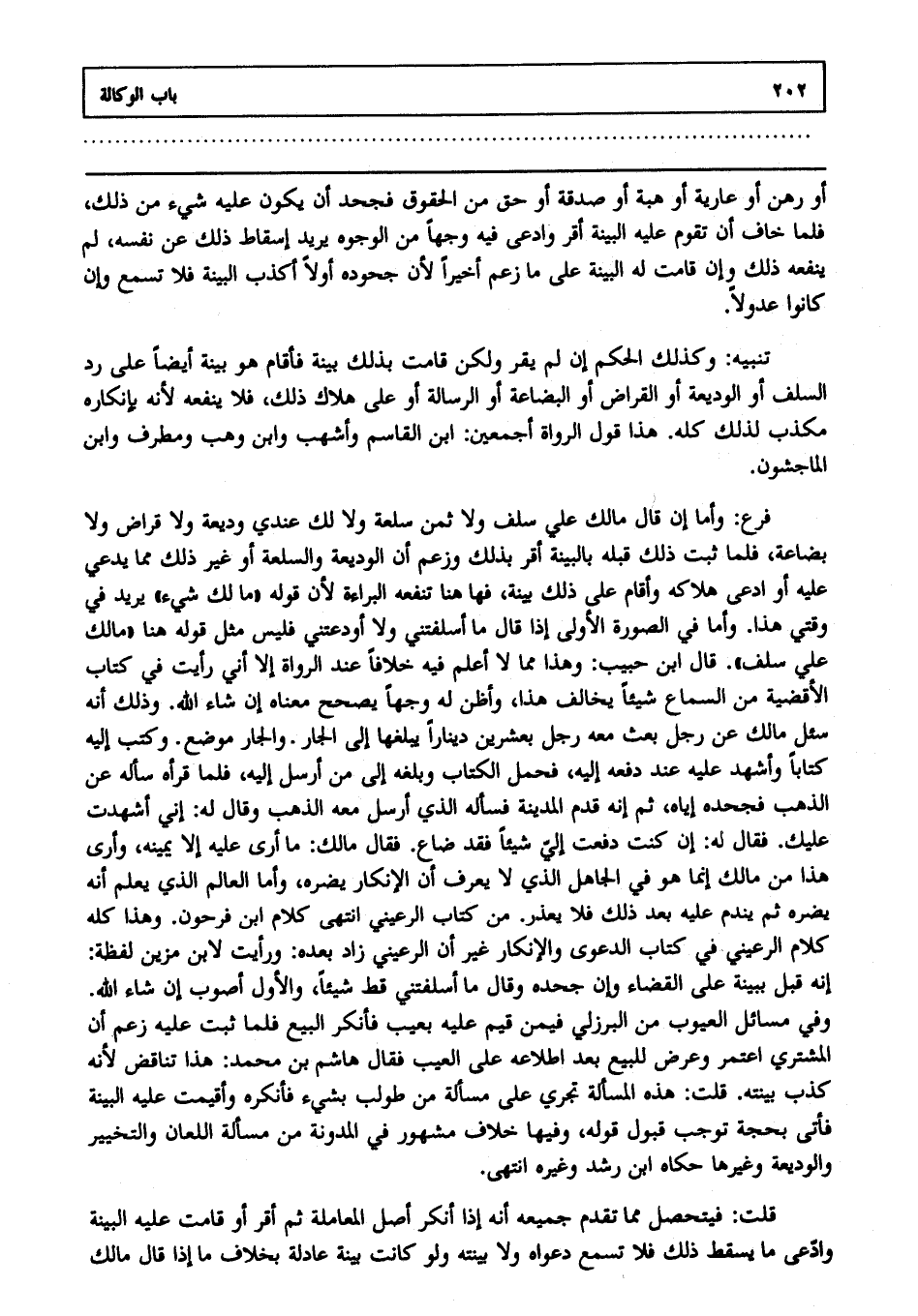 تنبيه: وكذلك الحكم إن لم يقر ولكن قامت بذلك بينة فأقام هو بينة أيضا على رد السلف أو الوديعة أو القراض أو البضاعة أو الرسالة أو على هلاك ذلك فلا ينفعه؛ لأنه بإنكاره مكذب لذلك كله هذا قول الرواة أجمعين ابن القاسم وأشهب وابن وهب ومطرف وابن الماجشون.