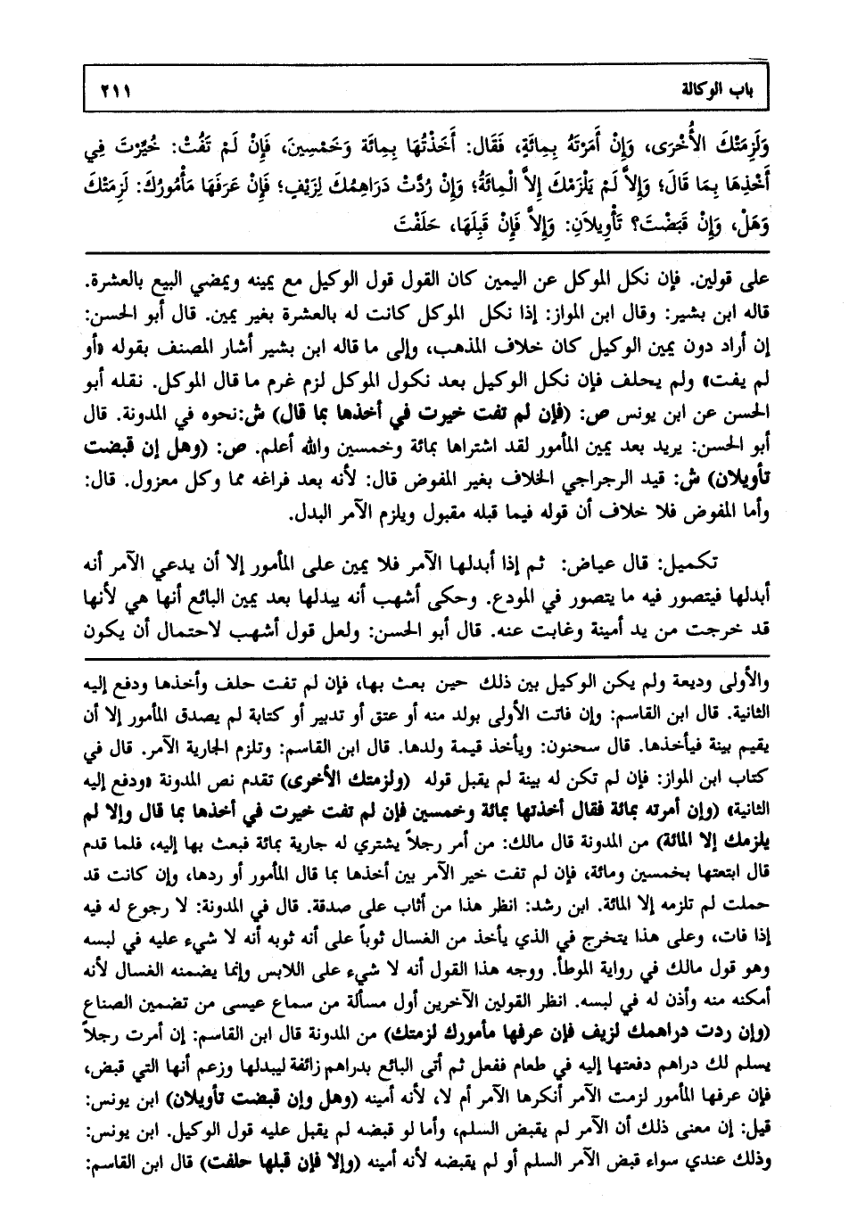تكميل: قال عياض ثم إذا أبدلها الآمر فلا يمين على المأمور إلا أن يدعي الآمر أنه أبدلها، فيتصور فيه ما يتصور في المودع وحكى أشهب أنه يبدلها بعد يمين البائع أنها هي؛ لأنها قد خرجت من يد أمينه وغابت عنه قال أبو الحسن: ولعل قول أشهب لاحتمال أن يكون