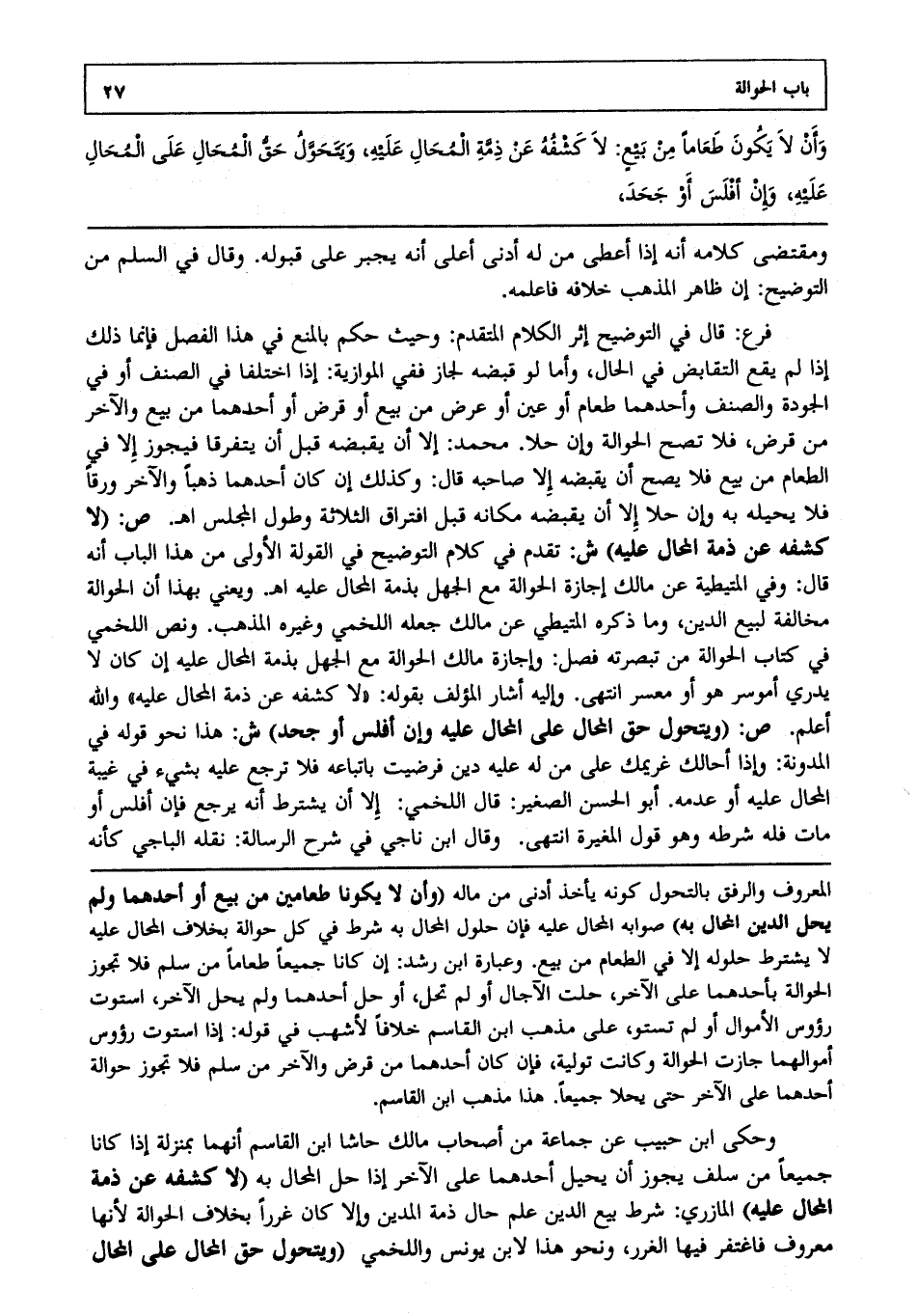 وأن لا يكون طتعما من بيع: لا كشفه عن ذمة المحال عليه ويتحول حق المحال على المحال عليه وإن أفلس أو جحد،