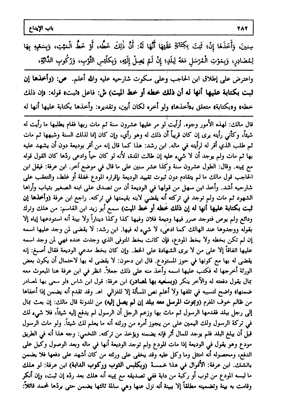 واعترض على إطلاق ابن الحاجب وعلى سكوت شارحيه عليه والله أعلم. ص: (وأخذها إن ثبت بكتابة عليها أنها له إن ذلك خطه أو خط الميت) ش: فاعل "ثبت" هو قوله: "إن ذلك خطه" و"بكتابة" متعلق بـ"أخذها" ولو أخره لكان أبين وتقديره: وأخذها بكتابة عليها أنها له
