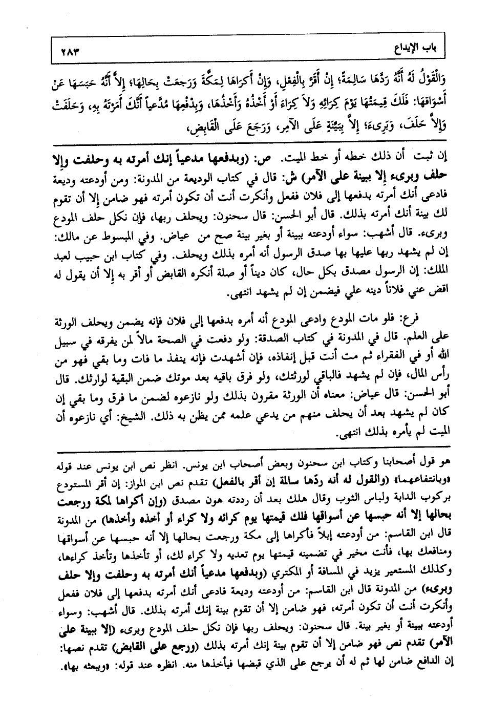 والقول له أنه ردها سالمة، إن أقر بالفعل، وإن أكراها لمكة ورجعت بحالها، إلا أنه حبسها عن أسواقها: فلك قيمتك يوم كرائه ولا كراء أو أخذه وأخذها، وبدفها مدعيا أنك أمرته به، وحلفت وإلا حلف وبرئ، إلا ببينة على الآمر ورجع على القابض،
